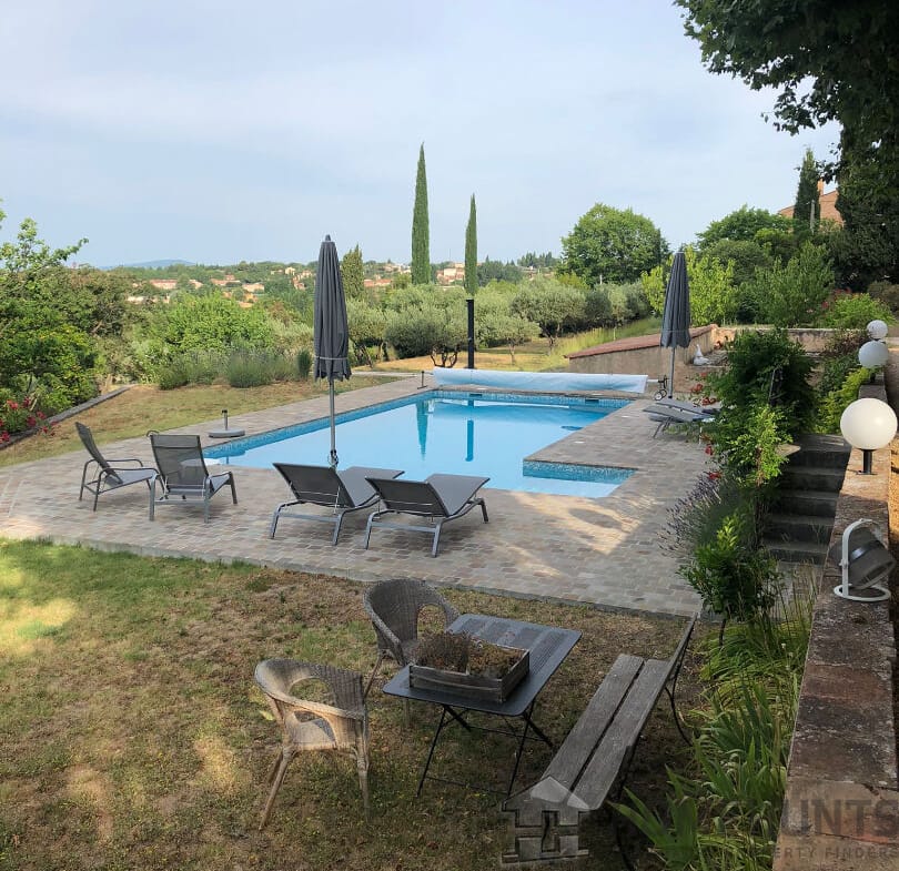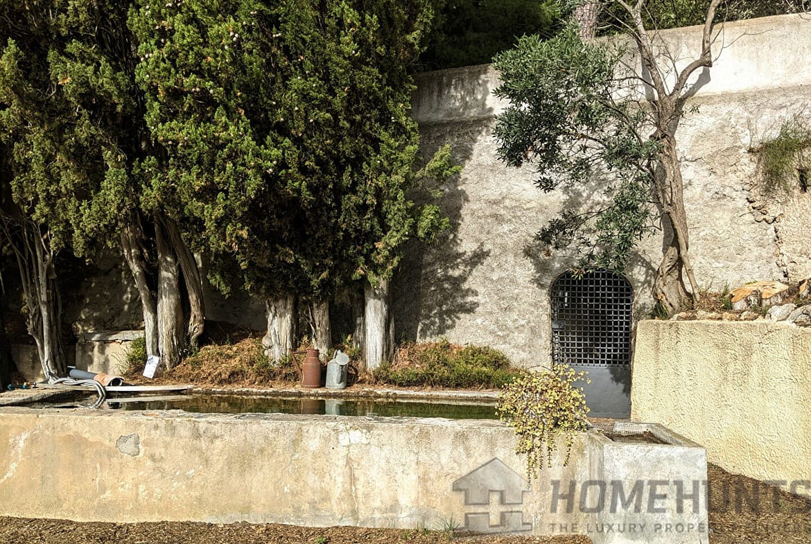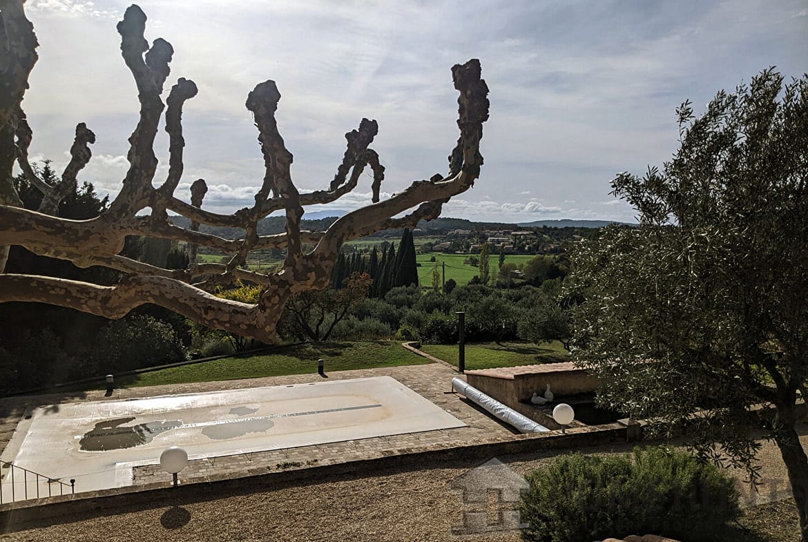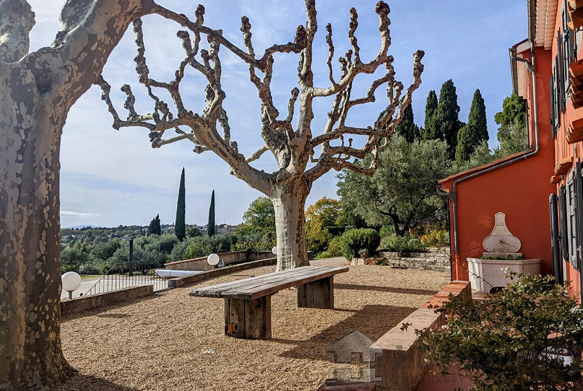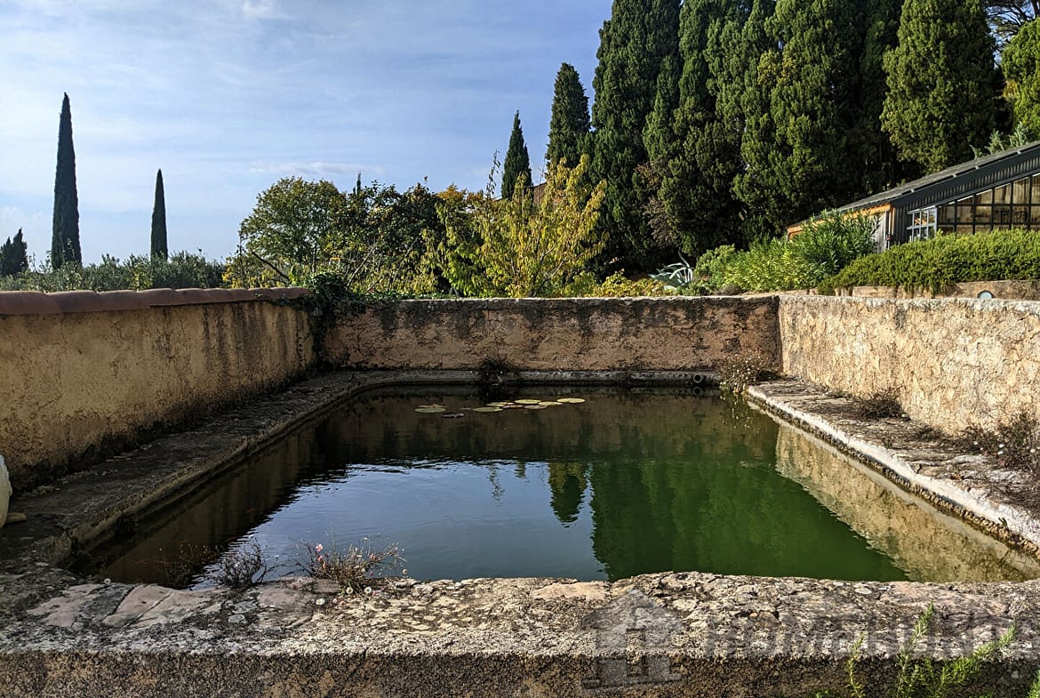 Exterior: 2885 m2 of grounds planted with olive and fruit trees, a 10 m x 5 m saltwater swimming pool with mosaic tiles, terraces, 2 ponds, a spring and century-old plane trees.