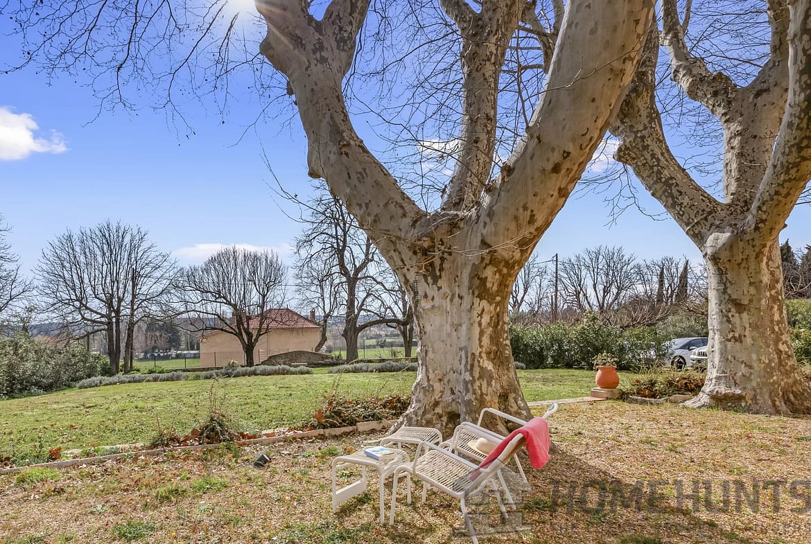 Outside, you’ll find three magnificent plane trees, a saltwater swimming pool (10m x 5m), a country house with a 15 m2 studio, an authentic barn, a boule court, and ample parking.