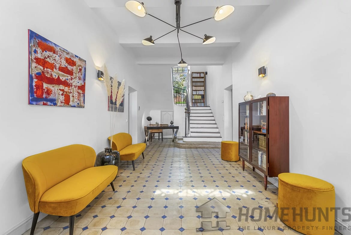 This magnificent three-story property with 12 rooms on a 5,000 m2 plot is located within walking distance of the village.