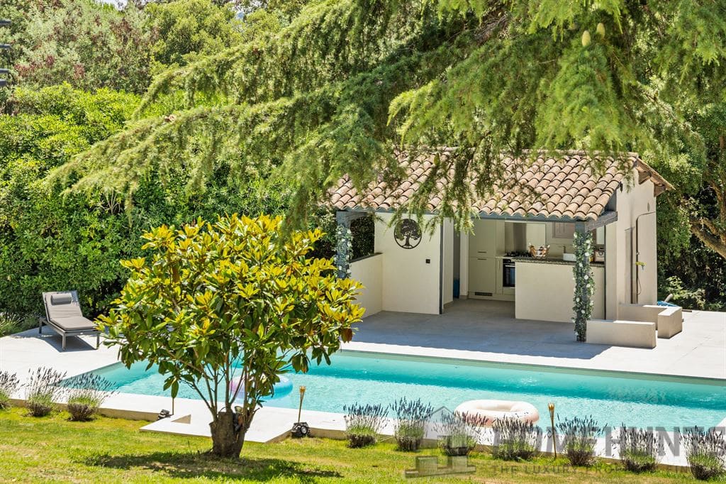 Located in a quiet and sought-after residential area of the hilltop village of Auribeau-sur-Siagne, this fully renovated villa offers a green and private setting just 20 minutes from Cannes, close to main roads and everyday amenities.