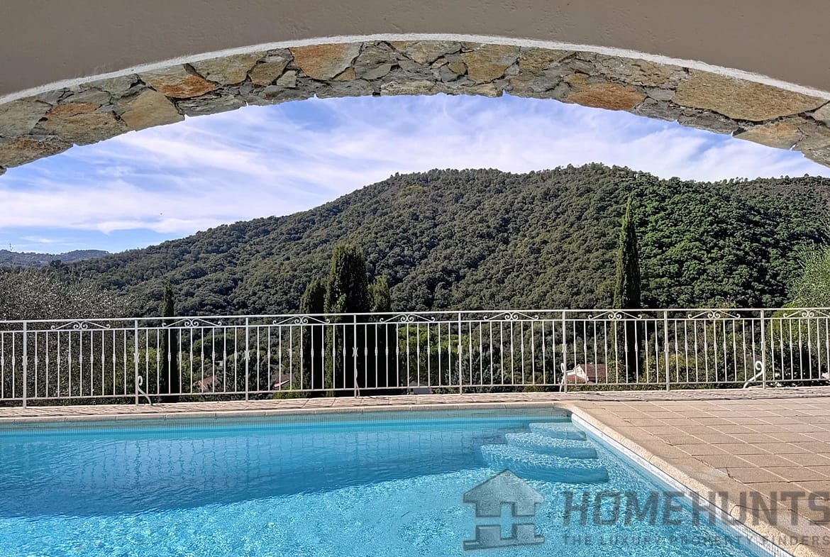 The main house features 4 bedrooms, a spacious and bright living room with exposed beams, a fully equipped kitchen, and several outdoor areas ideal for relaxation. It boasts a stunning panoramic view of the mountains, a beautiful swimming pool, and a well-maintained garden.