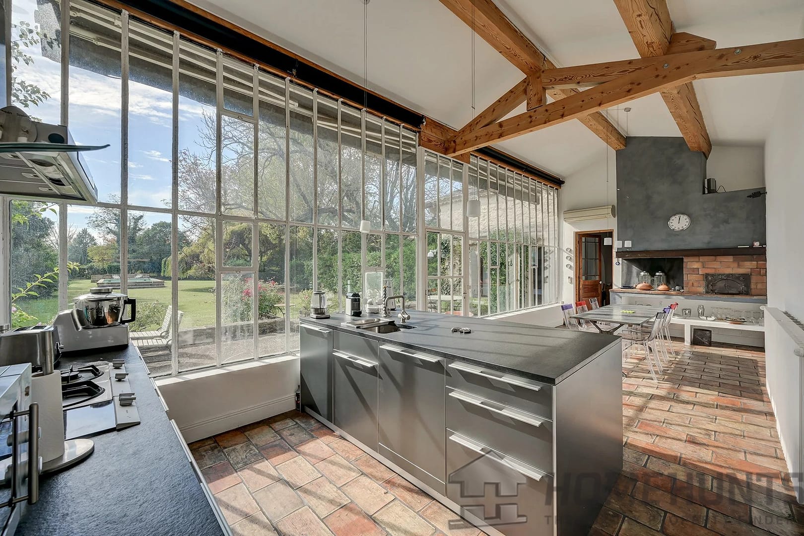 The main residence and a large separate studio-office provide a total area of approximately 300 m2.