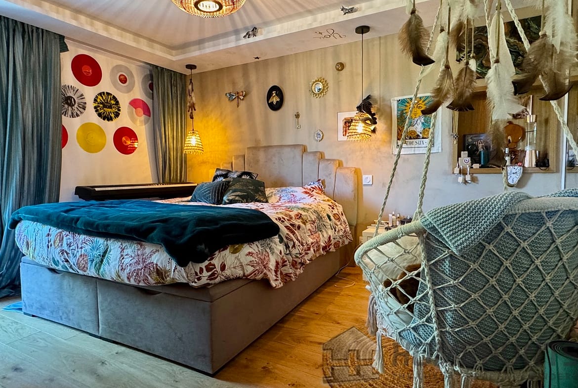 Fully renovated with high-end finishes, the property spans approximately 200 m2 of living space on a low-maintenance 770 m2 landscaped plot. The main living area is bright and airy, featuring large bay windows, a cosy fireplace, and a seamless flow between the fully equipped open-plan kitchen, dining area, and living room. A utility room, guest WC, and a home office (or extra bedroom) complete the upper level.