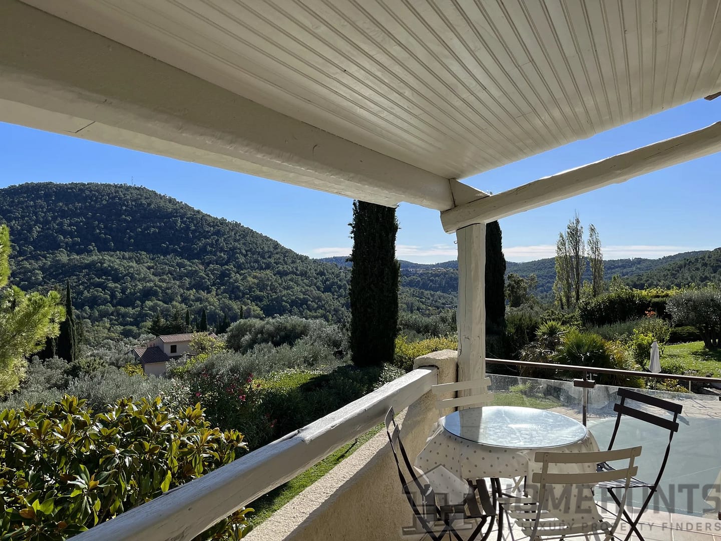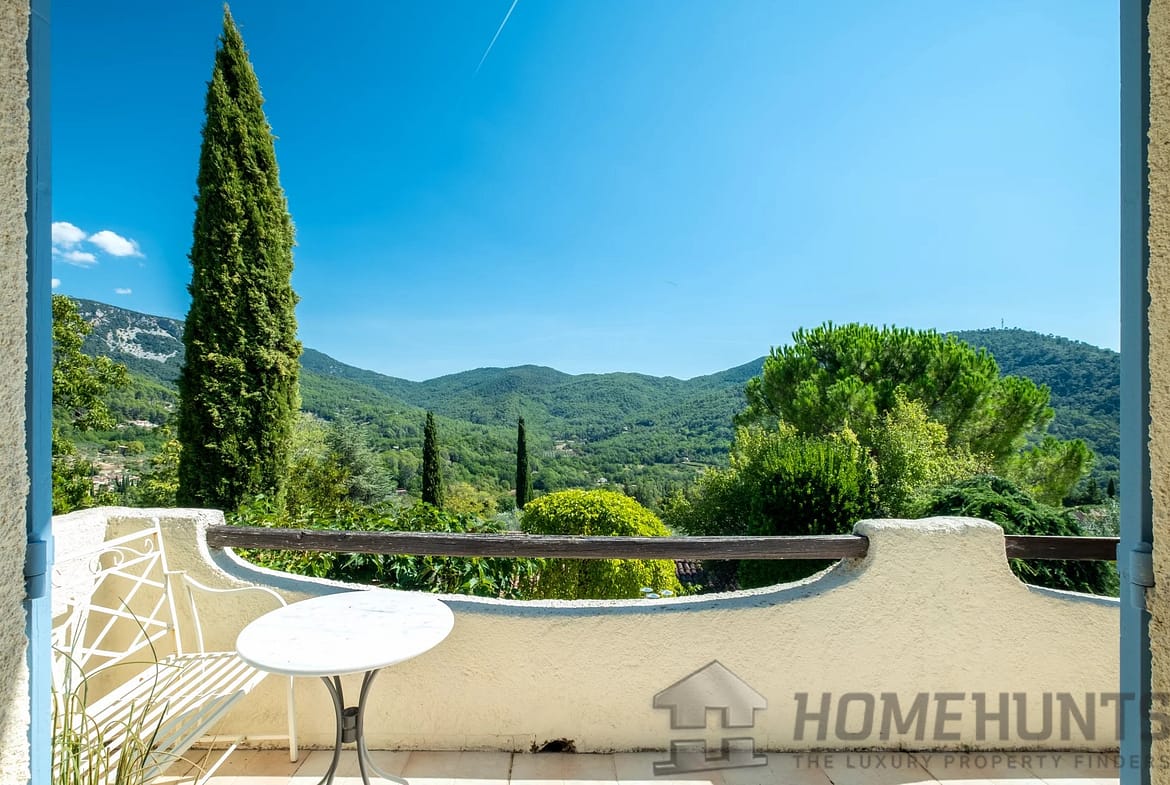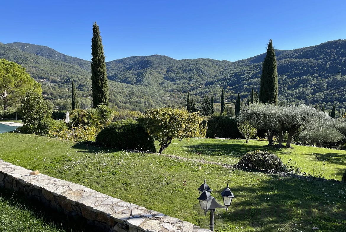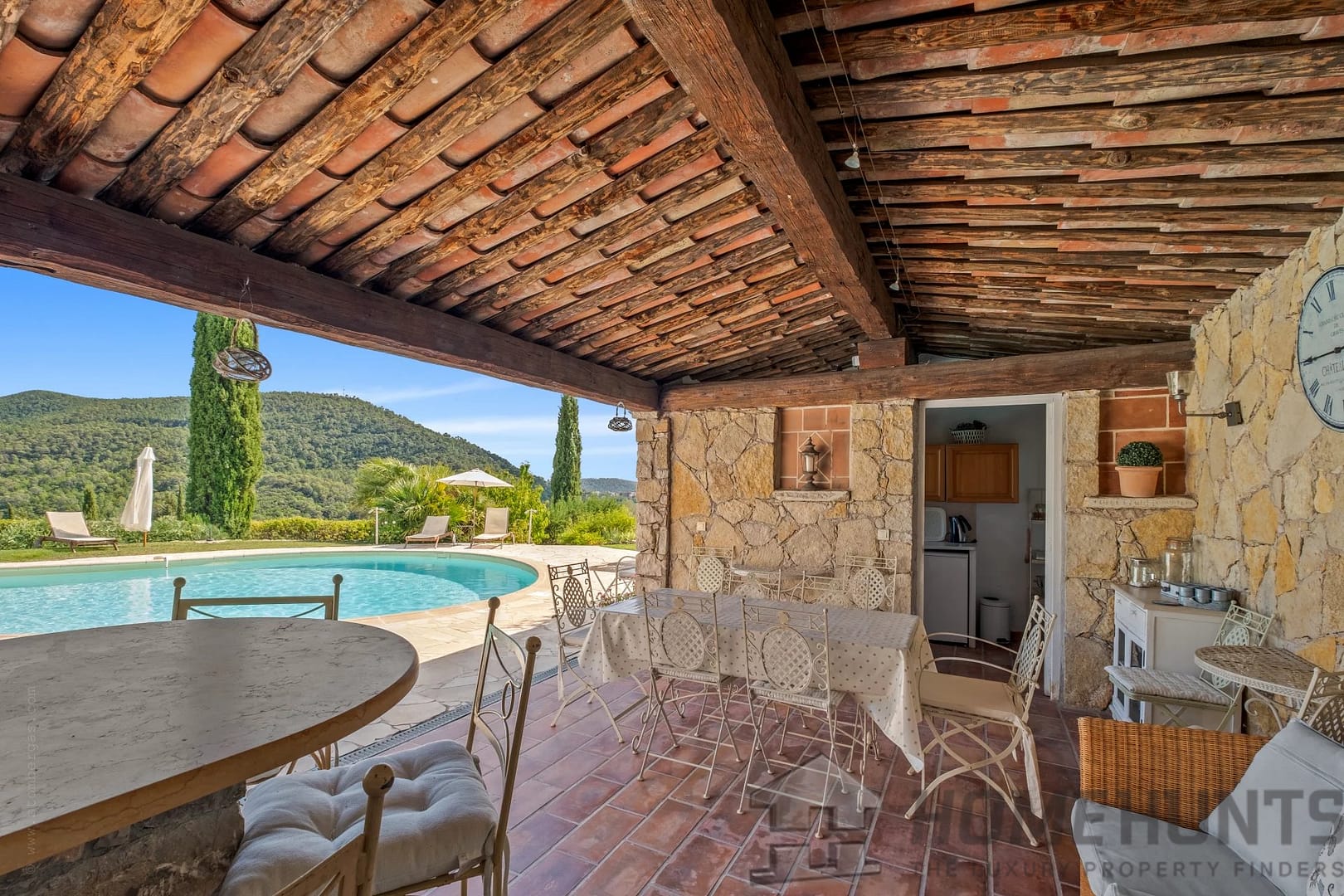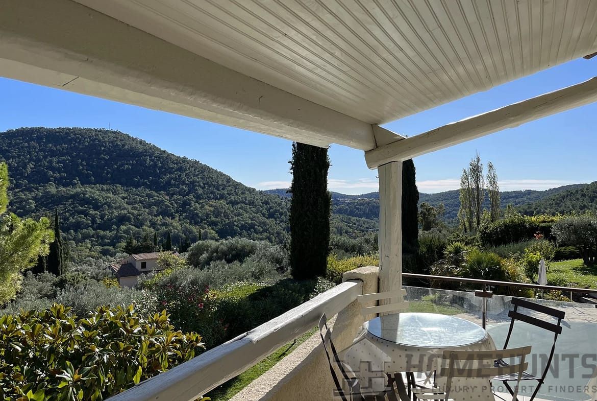 In the heart of the village of Bargemon, very beautiful villa of 192m2 with a fantastic view (total surface 265m2 with annexes) offering you the real provencal good life in a landscaped garden of 3147m2 with old olive and fruit trees and a beautiful salt-heated swimming pool.