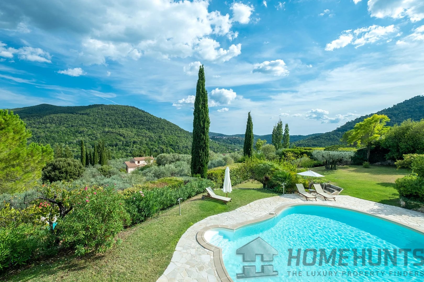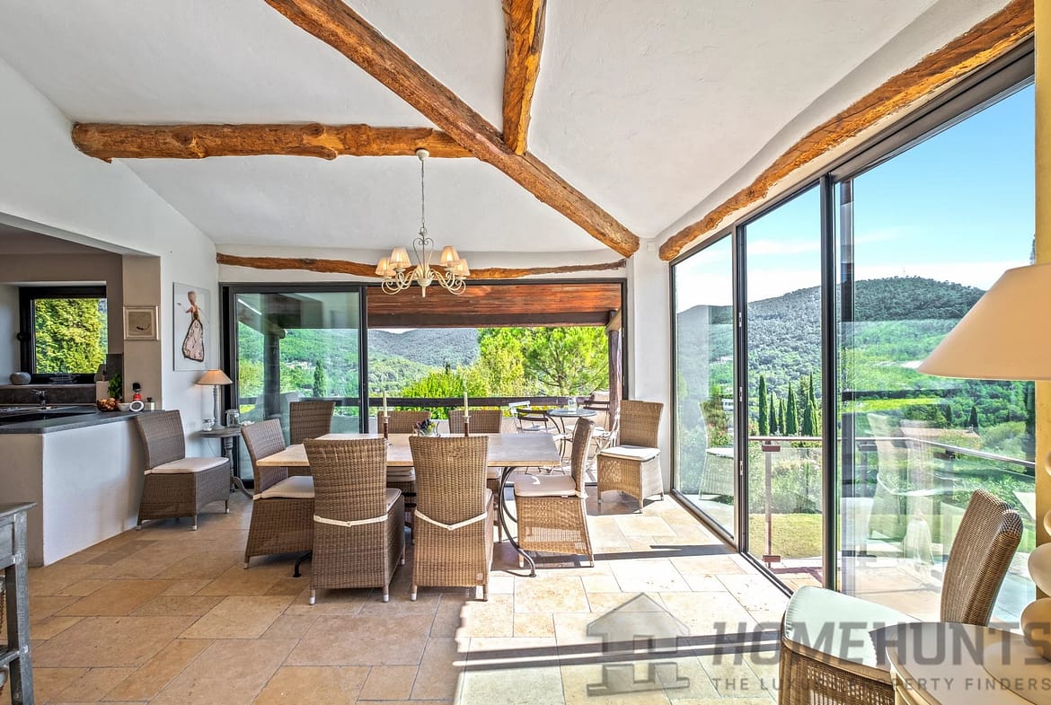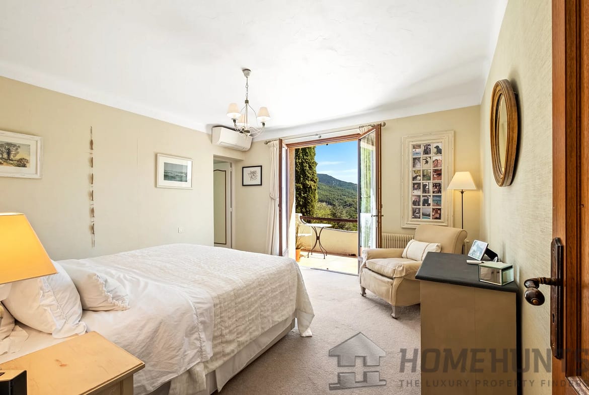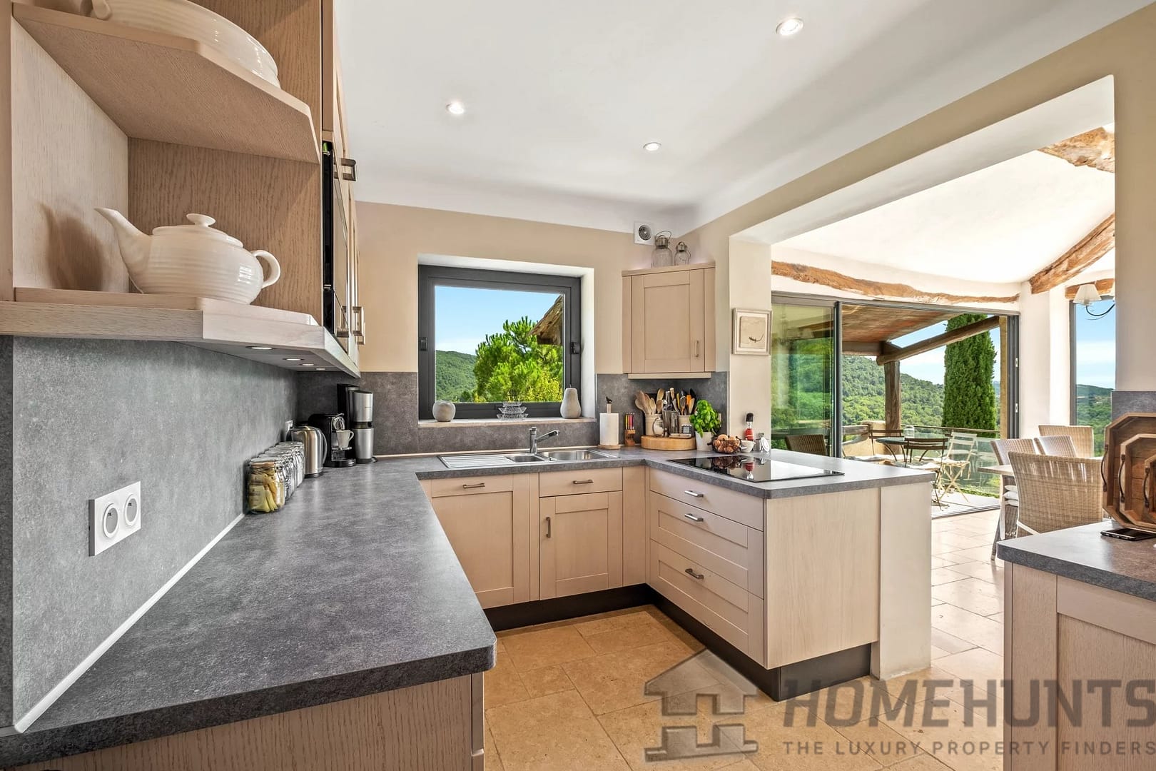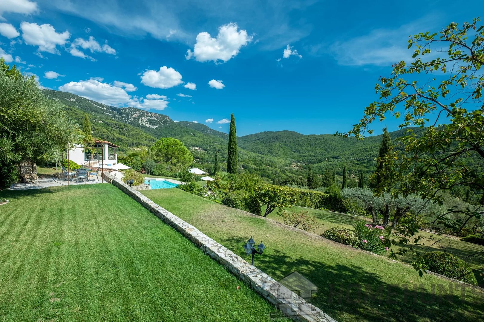 In the heart of the village of Bargemon, very beautiful villa of 192m2 with a fantastic view (total surface 265m2 with annexes) offering you the real provencal good life in a landscaped garden of 3147m2 with old olive and fruit trees and a beautiful salt-heated swimming pool.
