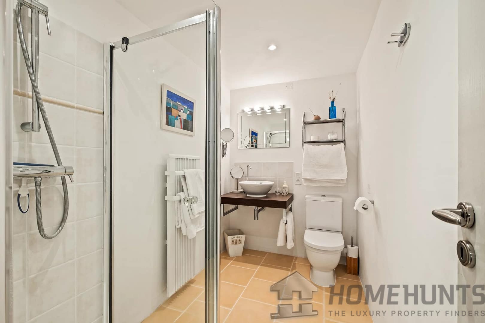On the garden level: 3 other bedrooms with their own bathroom, a laundry room, double garage, cellar, boiler room and pleasant covered terrace area.