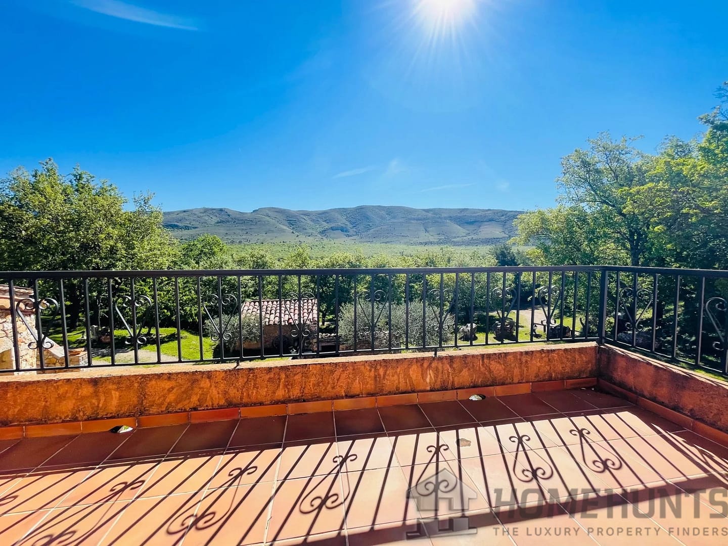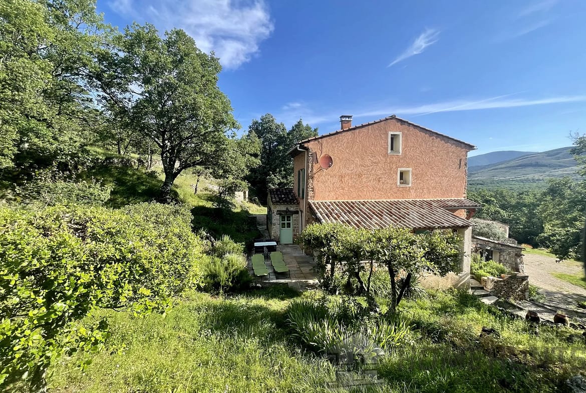 The main house consists of two large units. One with a living room, fireplace and mezzanine, fitted kitchen, bedroom with balcony, guest room, shower and bathroom, cellar, storeroom, 2 toilets, garage, covered terrace and garden terrace, a studio with shower, WC and terrace. The second part, with independent access, is equipped with a kitchen, living room, 2 bedrooms with shower and terrace.
