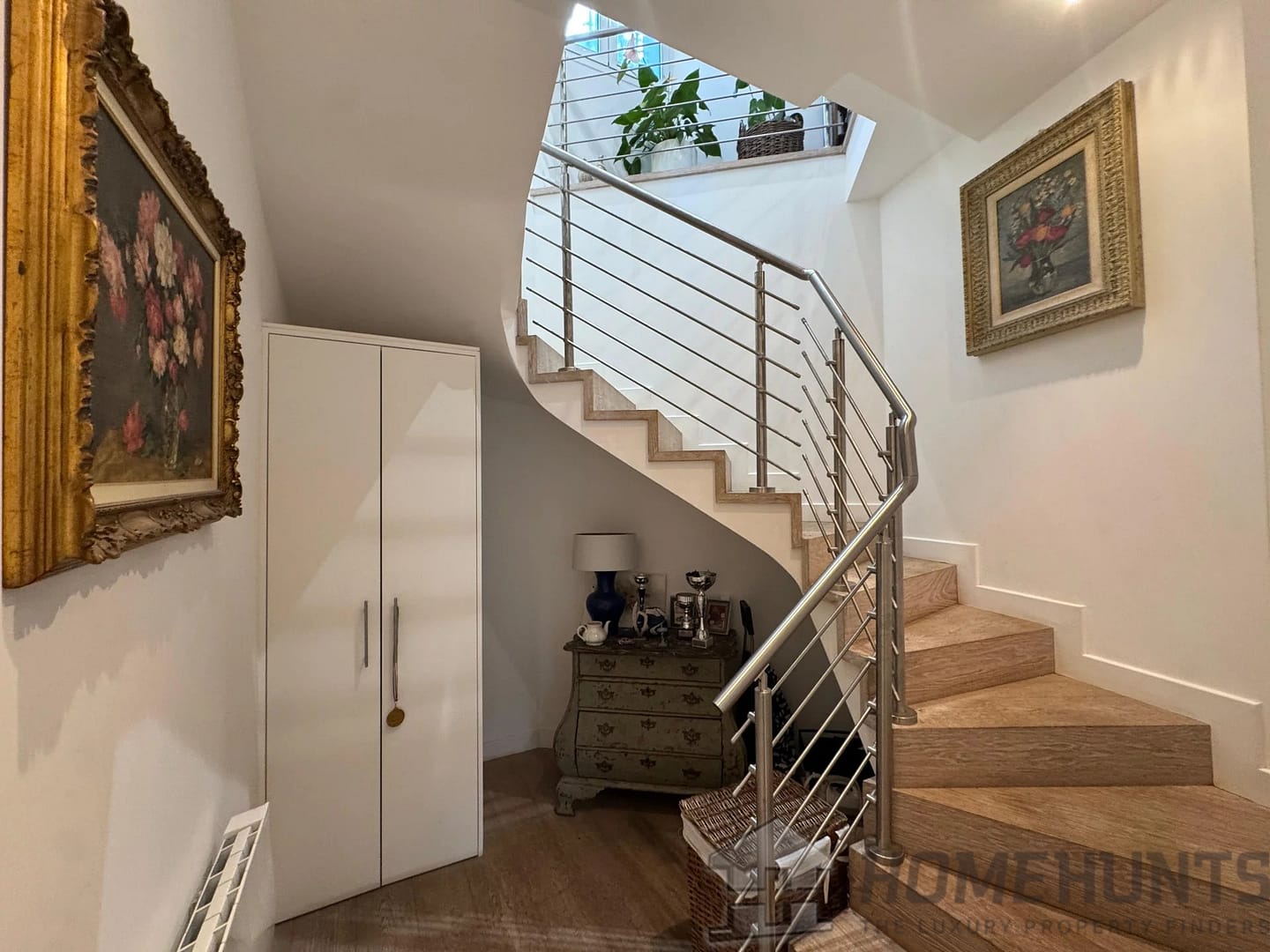 Set within a lush, landscaped garden, the property exudes timeless charm and modern comfort. The elegant interiors combine period character with contemporary finishes, creating a warm and inviting atmosphere.