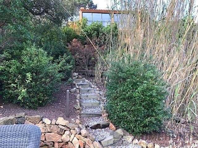 Built in 1990 on a 857 m2 plot with a gentle slope giving rise to several independent spaces throughout the garden, which favors having several terraces and barbecue, heated pool area, wild gardens with total privacy, play area and chill-out.