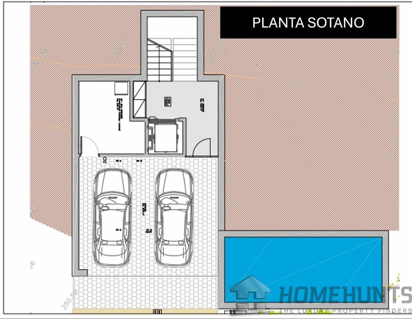 The house is on three levels, with an elevator, and has a garden, private pool, and garage. It has 250 m2 built. Distribution: Lower floor: Large garage, machine room (aerothermal) and pool machine room.