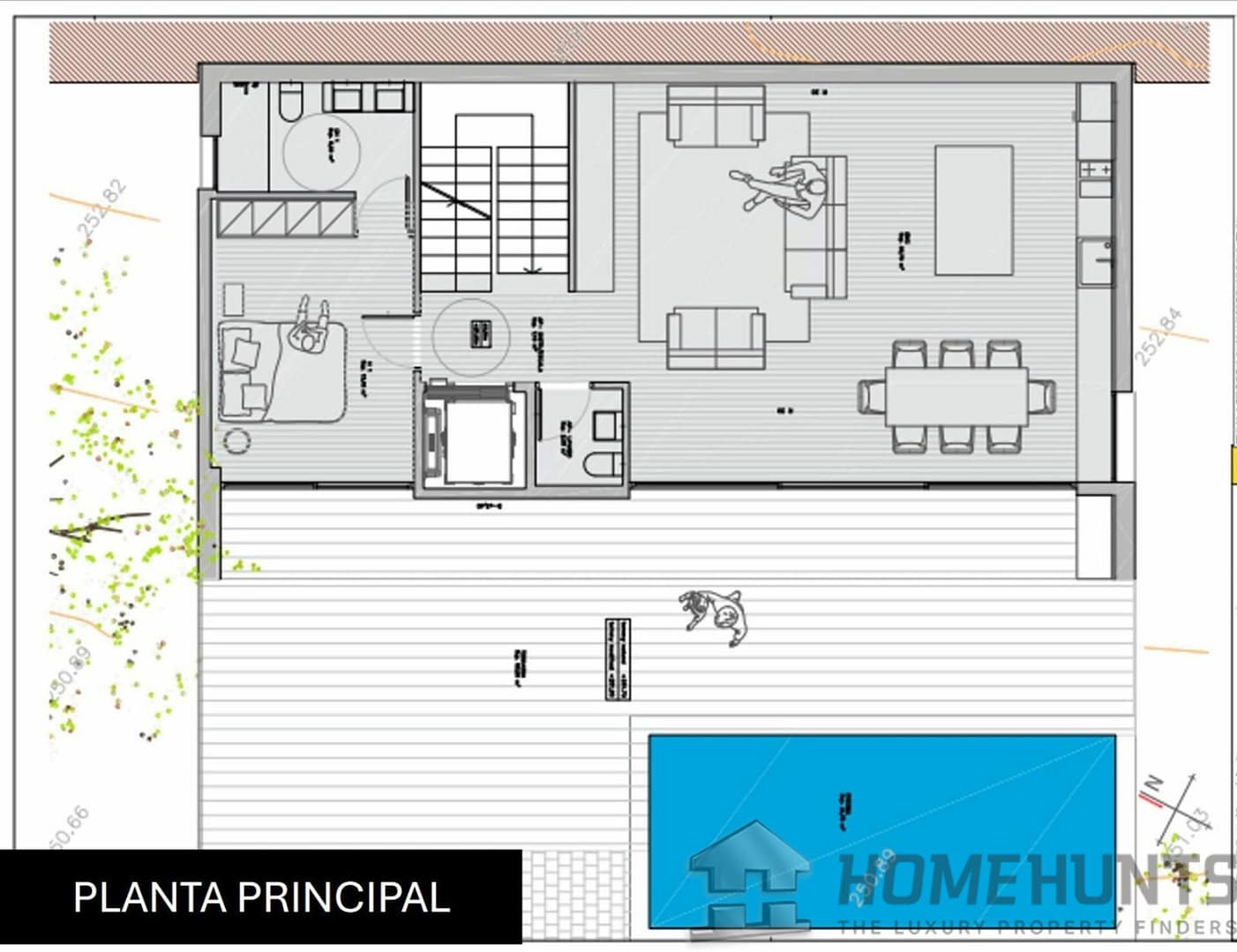 Technology is very present in the house, which has aerothermal air conditioning and home automation. Regarding aesthetics and interior design: White surfaces, natural stone, quality porcelain coverings, and the main door made of noble Iroko wood. Currently under construction. Expected delivery date: First quarter of 2025