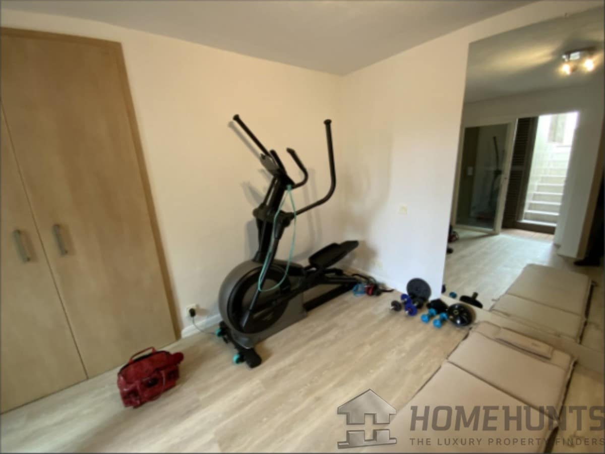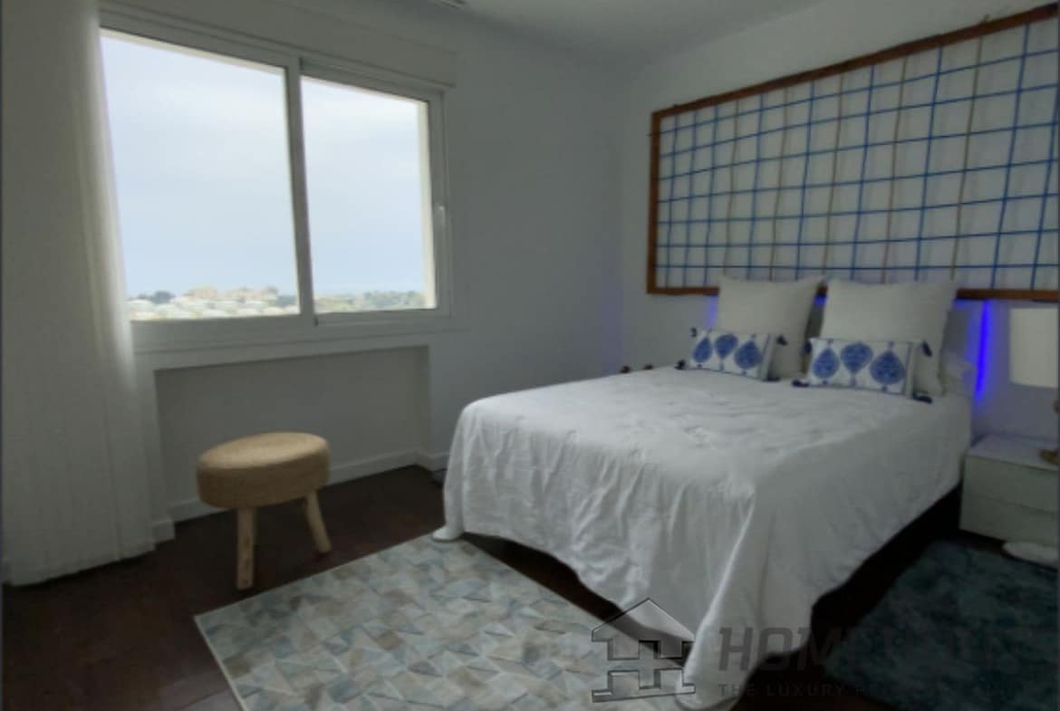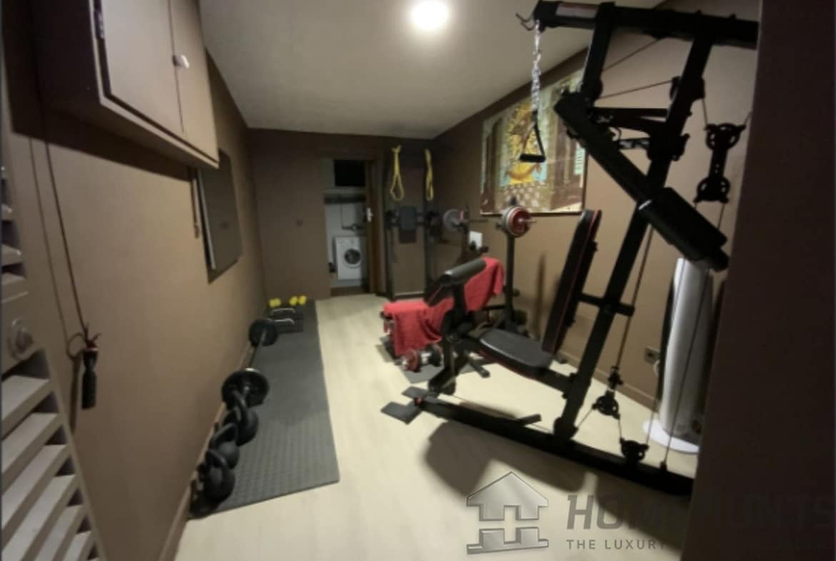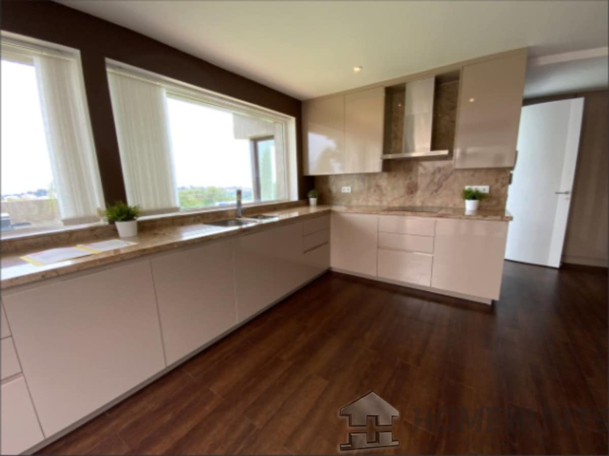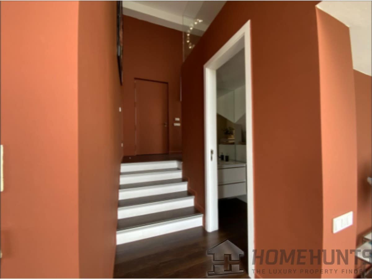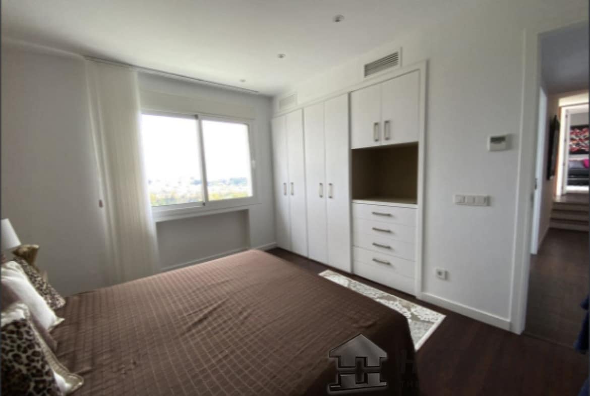 From the main entrance you get to an elegant living room with fireplace and separate dining room, both with access to the covered terrace. The large modern kitchen has room for a breakfast area. On the first floor is the master bedroom with access to the large terrace from which you have wonderful views. There are two more bedrooms on the same floor. There are hardwood floors on the first floor, the rest is marble floor, underfloor heating.