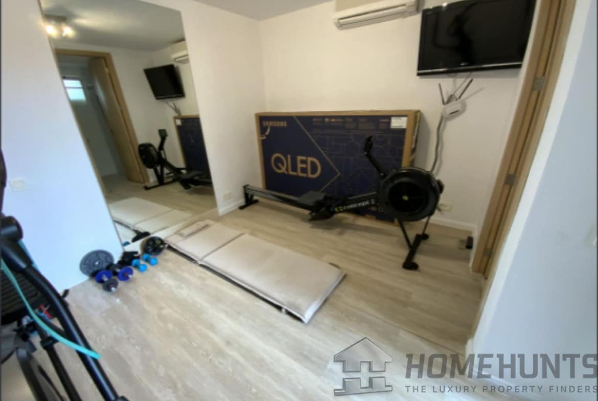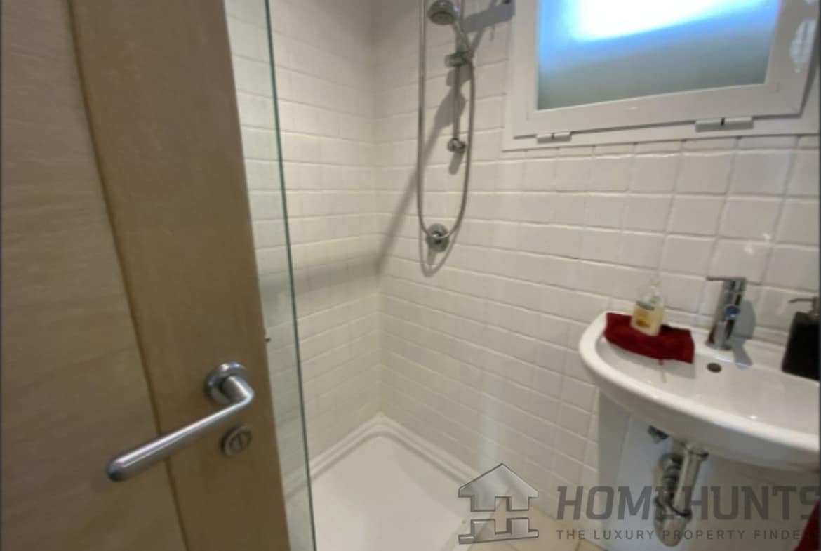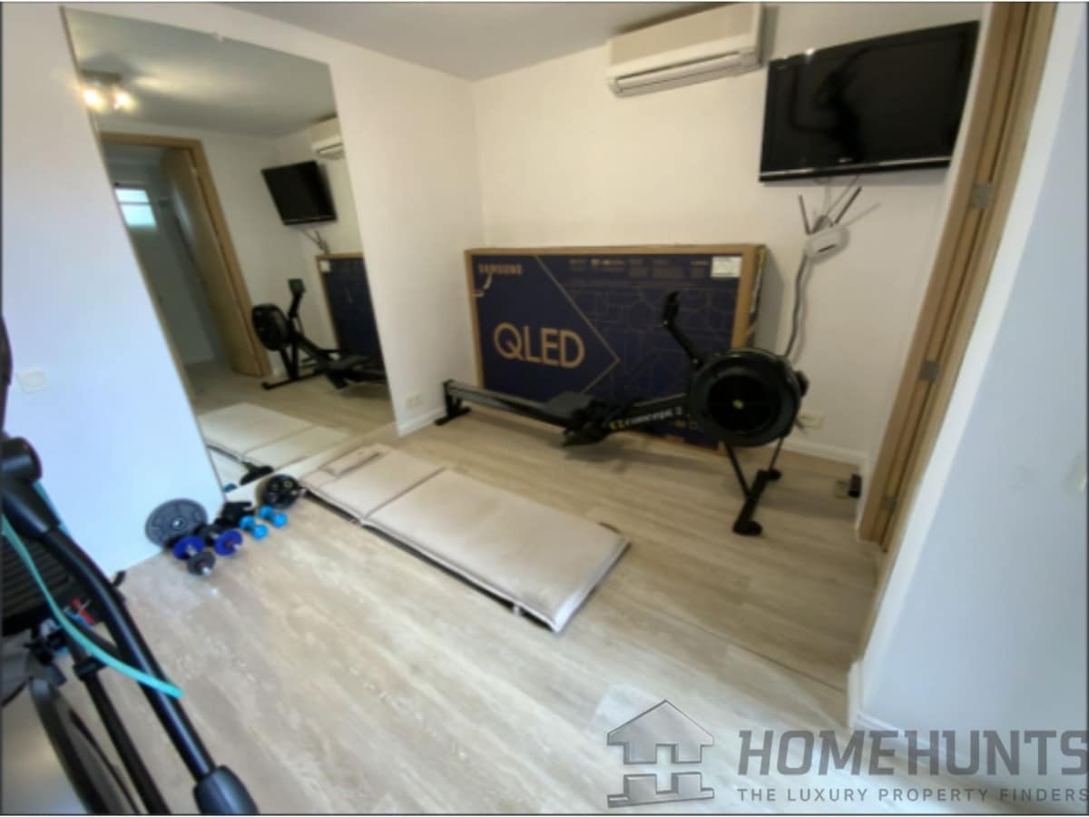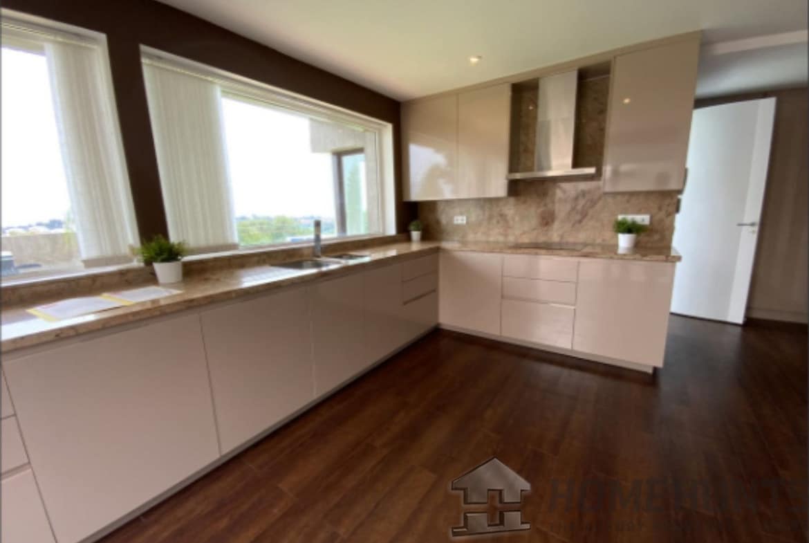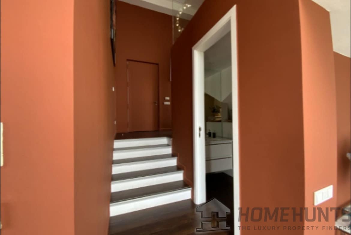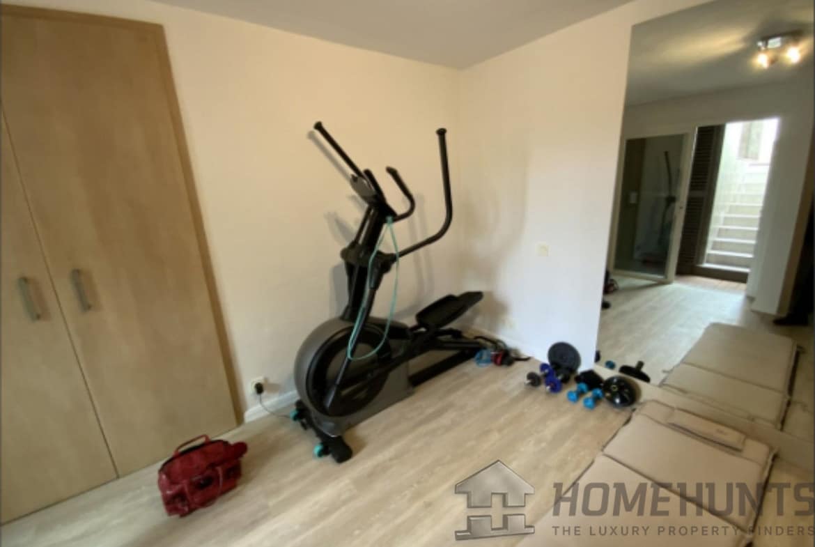 From the main entrance you get to an elegant living room with fireplace and separate dining room, both with access to the covered terrace. The large modern kitchen has room for a breakfast area. On the first floor is the master bedroom with access to the large terrace from which you have wonderful views. There are two more bedrooms on the same floor. There are hardwood floors on the first floor, the rest is marble floor, underfloor heating.