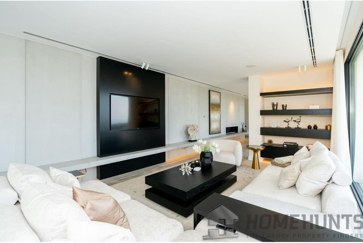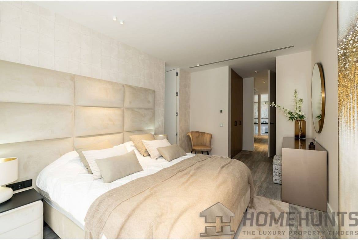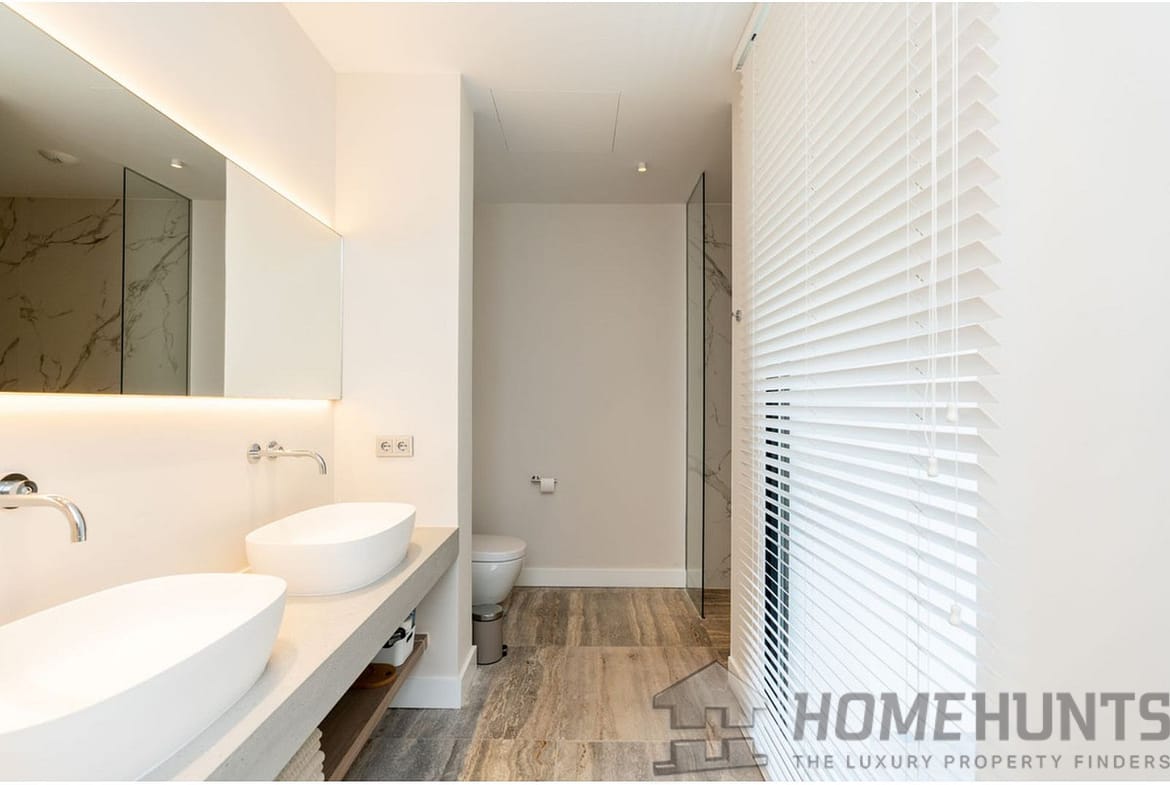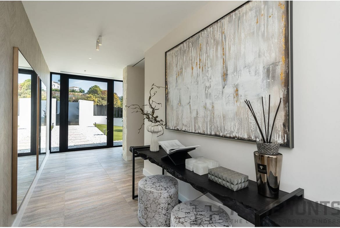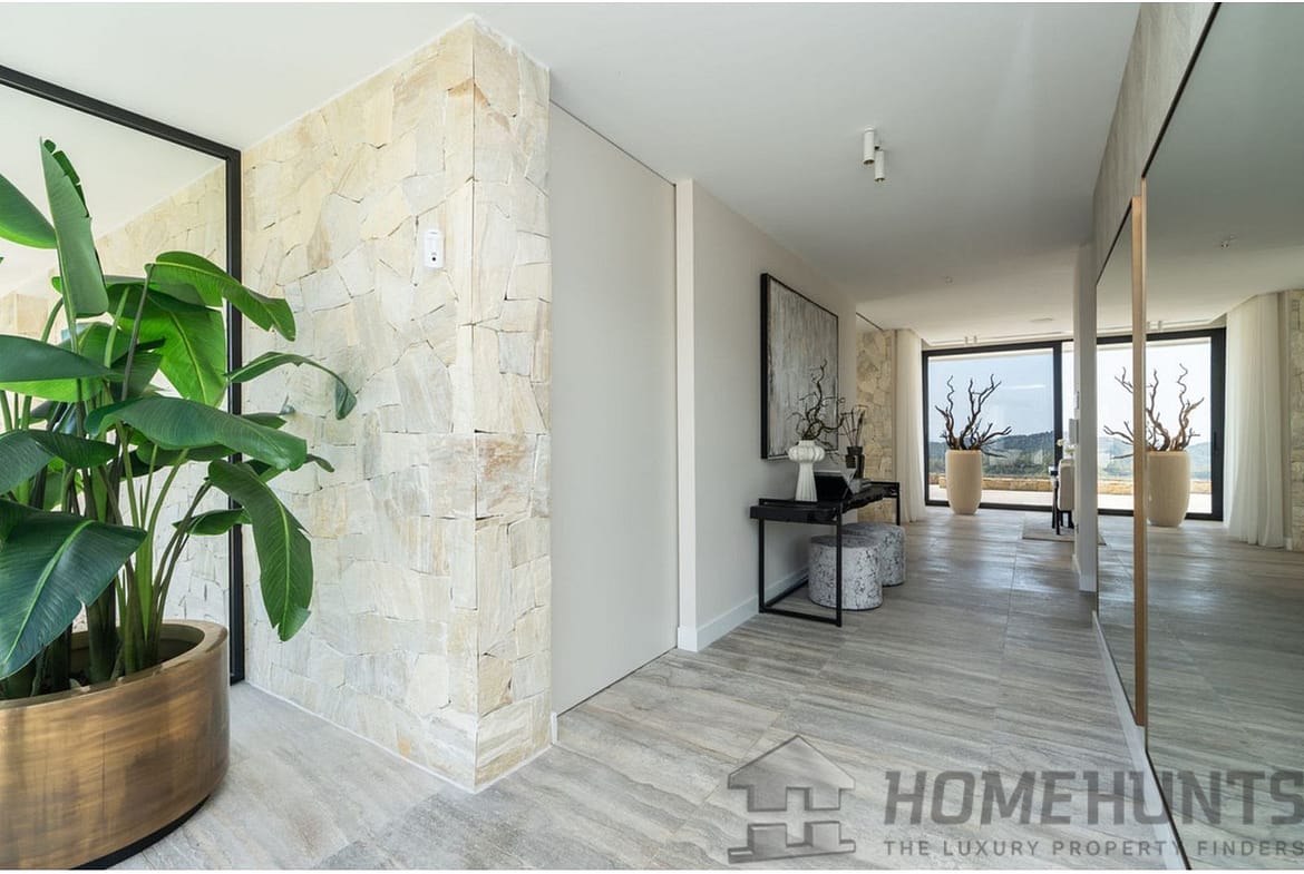 On the ground level there is a large hallway with a fully equipped utility room. The dining room, lounge area and high-end kitchen have access to the terraces where you will find a heated pool and a fire pit area when you can enjoy the spectacular sun sets over the sea and mountains.On this level there are 2 bedrooms both with fitted wardrobes and en-suite bathrooms.