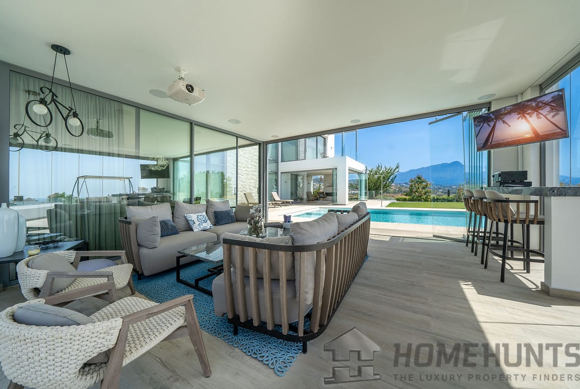 Enjoying panoramic views spanning the mountains, golf courses and the Mediterranean Sea, this villa is a real luxury retreat on the Costa del Sol.