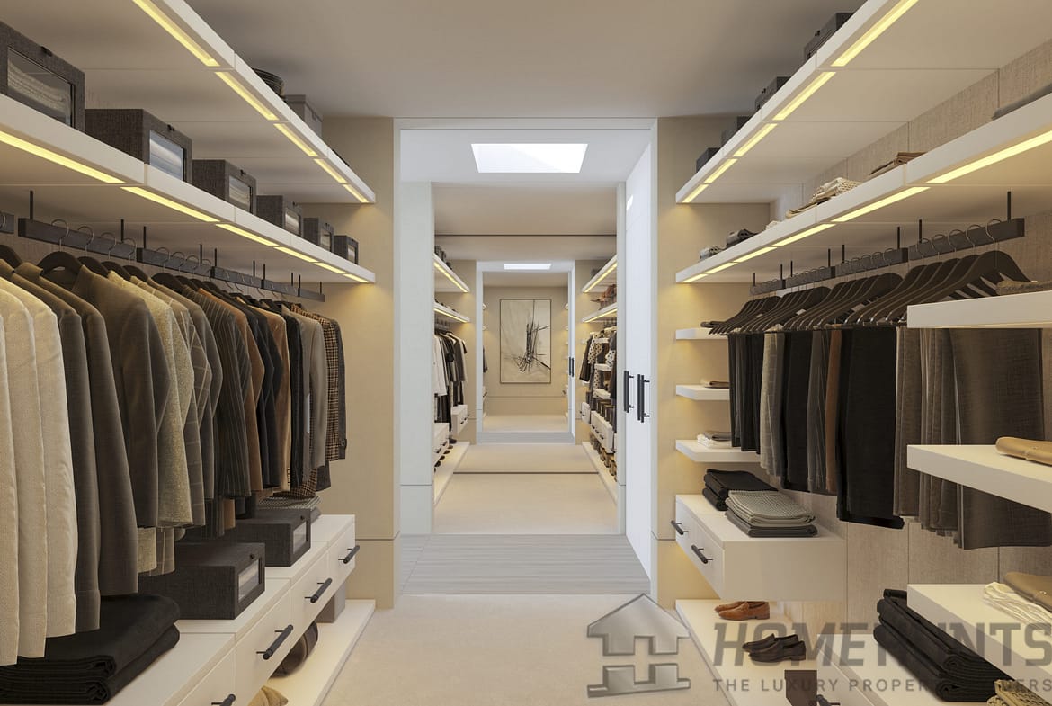 Venture down to the lower level, where three en suite bedrooms, each with its own private terrace, await. The master suite is a true sanctuary, featuring his-and-hers walk-in wardrobes, a dedicated closet for shoes and bags, and a luxurious ensuite bathroom. For leisure and wellness, this level also boasts a games room, a TV lounge, and a private gym with a separate sauna and shower, perfect for both relaxation and fitness. From here, you can access the beautifully landscaped garden at the base of the property, offering a peaceful retreat.