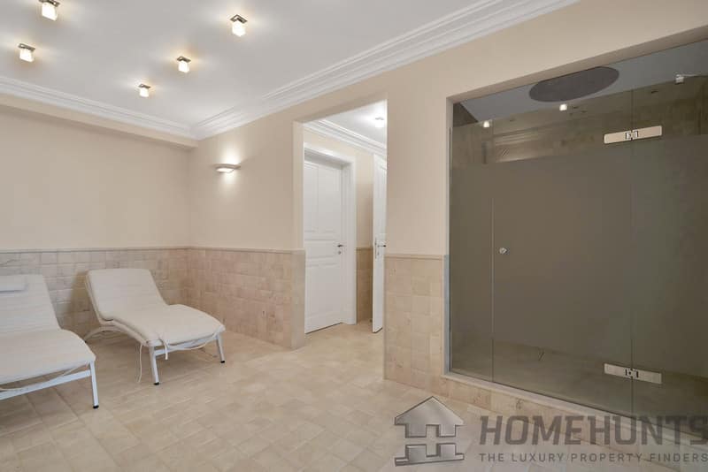 Built with the highest quality; solid wooden floors, Travertino marble, custom made windows, excellent isolation, very modern home automation system, solar and heat pumps for hot water and heating, individually adjustable underfloor heating (solar energy) throughout the house, illuminated and heated swimming pool, poolside barbecue area, spa and gym area, wine cellar, elegant eat-in kitchen, spacious ensuite bedrooms with adjoining bathrooms, are just some of the many outstanding amenities of this beautiful home.