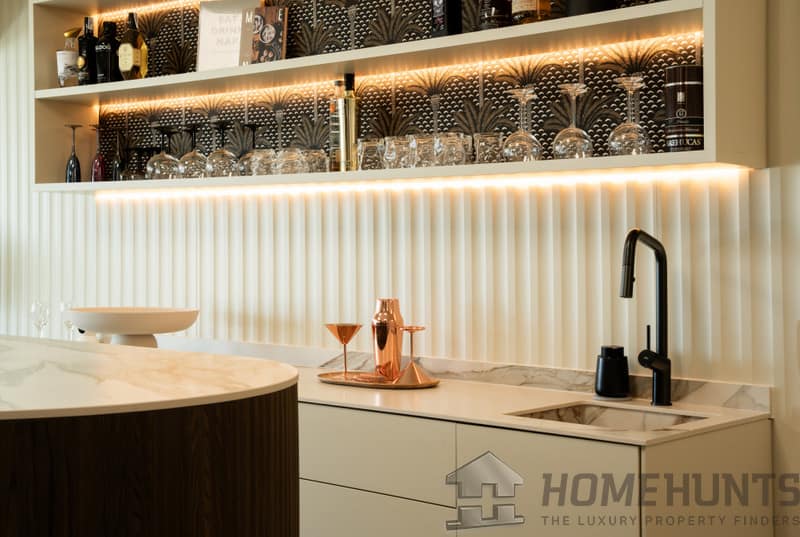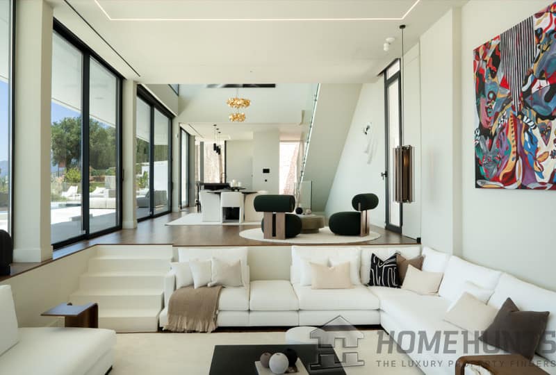 Outside, the home offers a 24-meter infinity-edge pool, an outdoor kitchen and lounge, beautifully landscaped gardens, and multiple chill-out areas. A private driveway with space for guest parking and a three-car garage ensures practicality to match the property’s luxury.