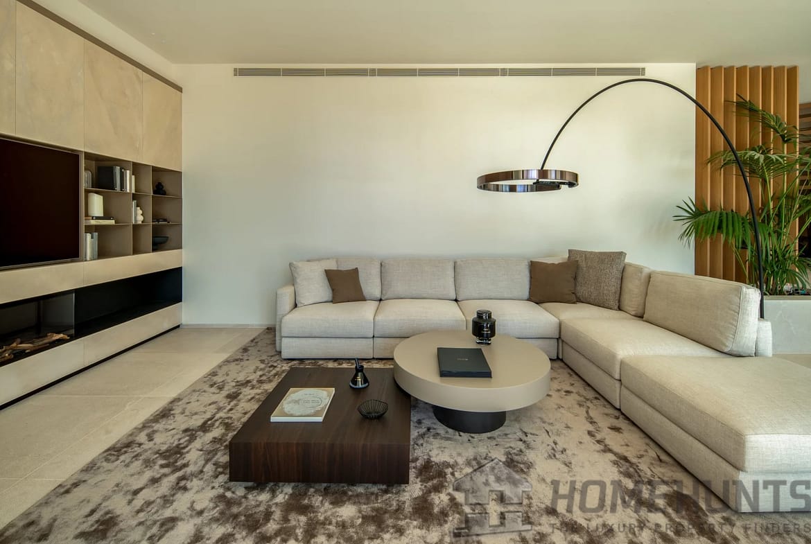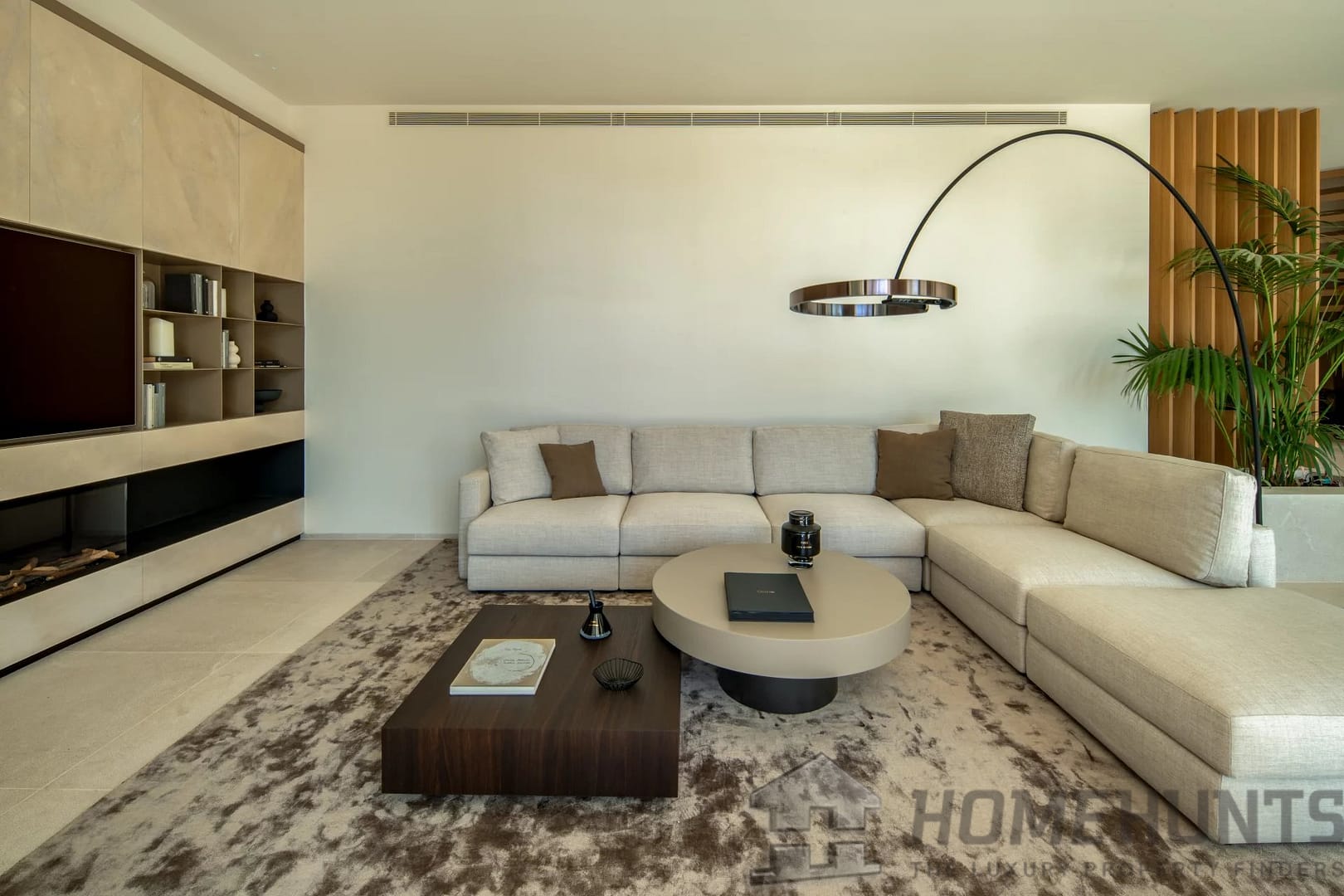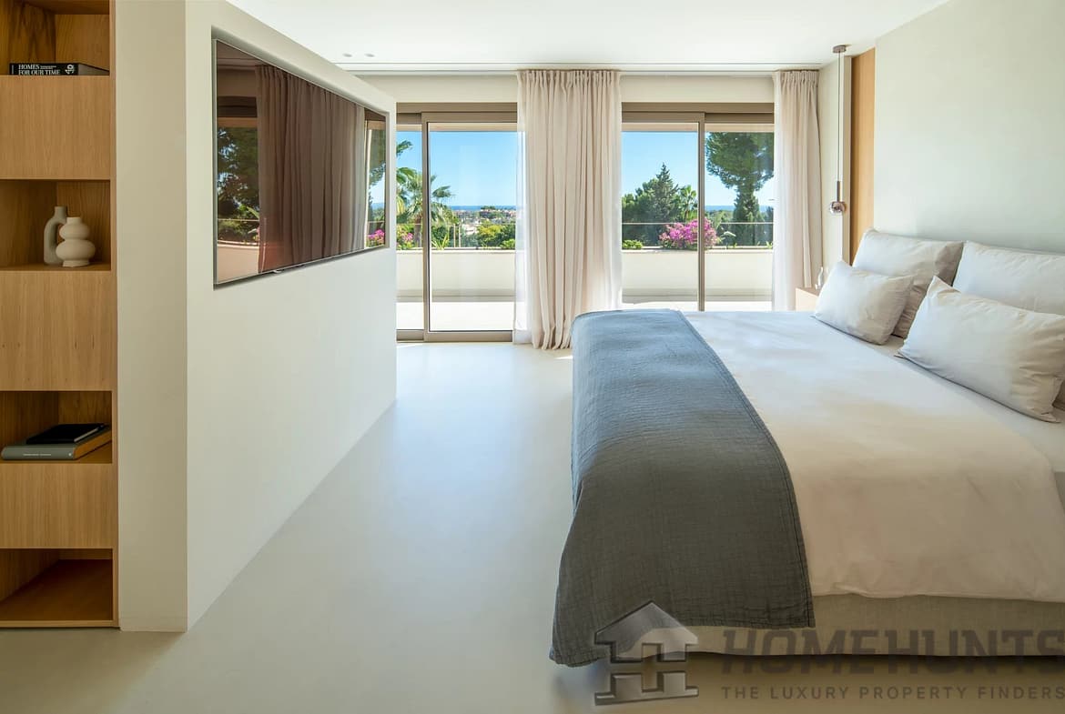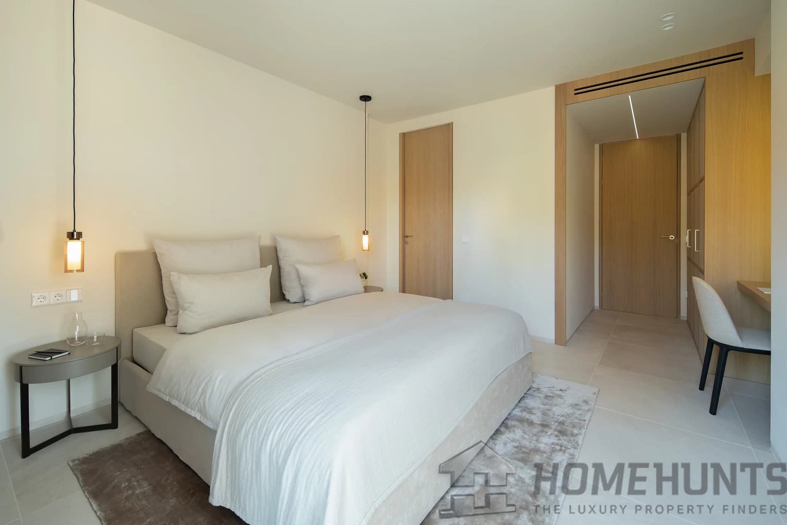 Upstairs is the luxurious master bedroom, which includes a bespoke dressing room and spa-like bathroom with panoramic sea views. From here there is access to a private balcony perfect for relaxing. Also on this same level are two additional bedrooms, each with its own en-suite bathroom, ensuring privacy and comfort for family or guests.