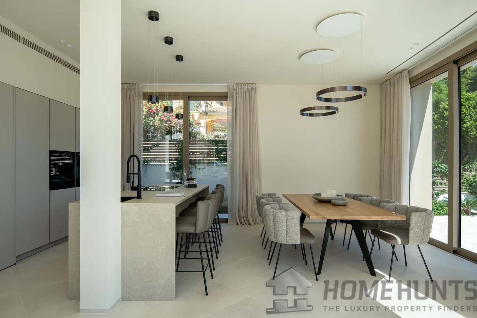 Distributed over three floors connected by elevator, the villa offers a generous living area of more than 640 m2, in addition to more than 250 m2 of terraces. In addition, there is an impressive roof terrace with unobstructed sea views, ideal for enjoying the Mediterranean lifestyle in the open air.