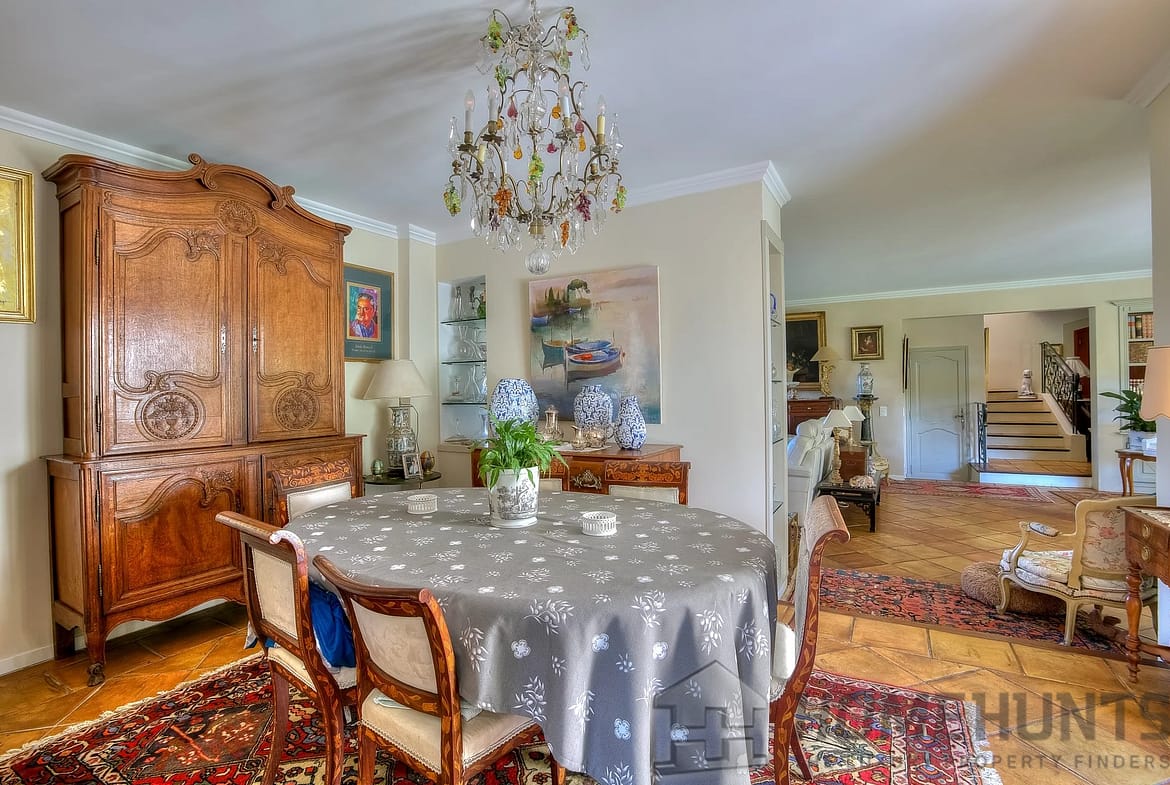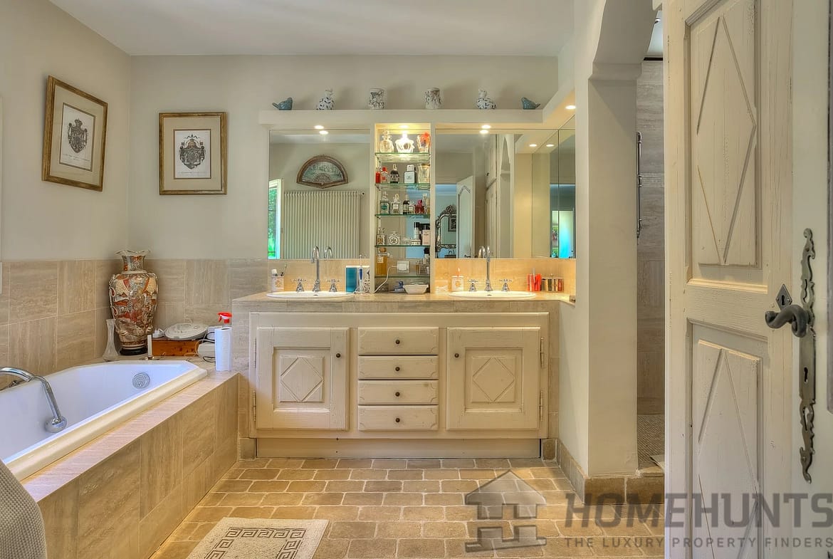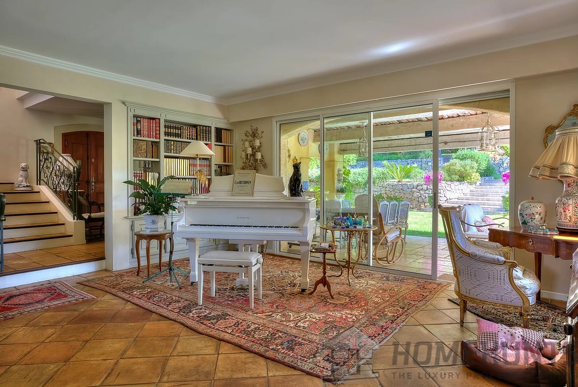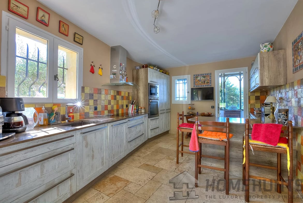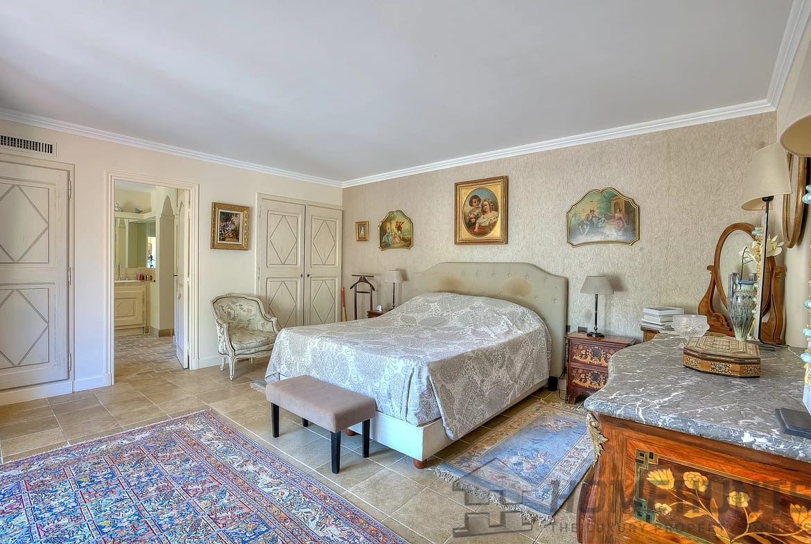 The villa comprises a vast living room with fireplace and dining room, with large sliding doors opening onto the terraces. This large living room is complemented by an adjoining Proveníçal kitchen with a pantry and laundry room.