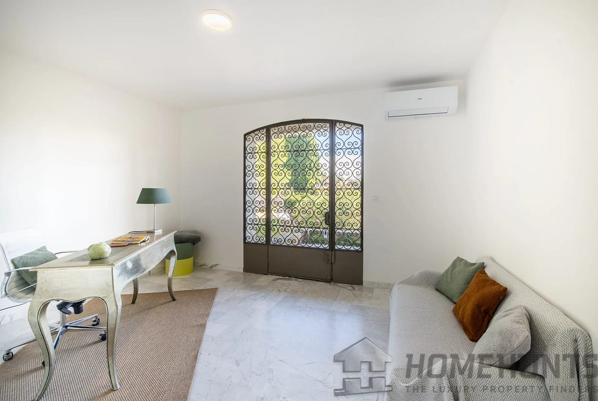 Located in one of the most discreet and exclusive neighborhoods on the Cote d’Azur, just minutes from the sea, this stunning recently renovated property is surrounded by lush greenery and boasts a south-facing garden bathed in sunlight.