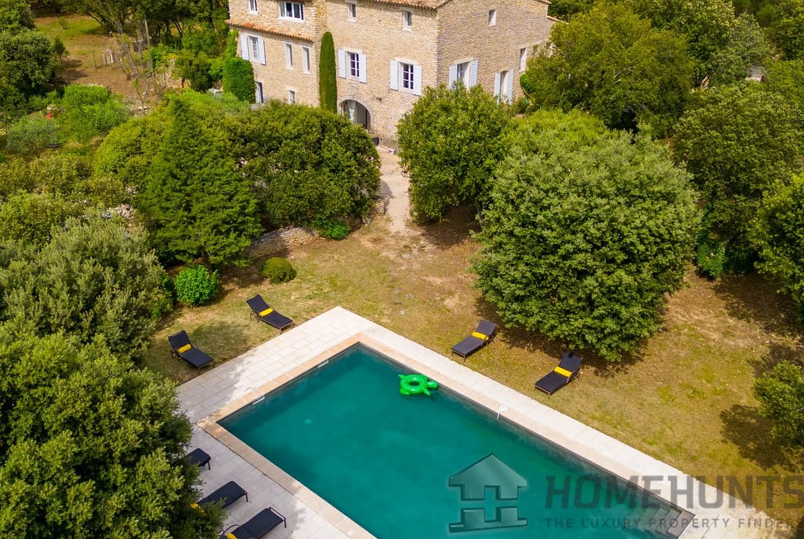 On the outskirts of Bonnieux, in a residential area overlooking the village, this imposing stone bastide, surrounded by 1.4 hectares of grounds planted with olive trees and Mediterranean plants.