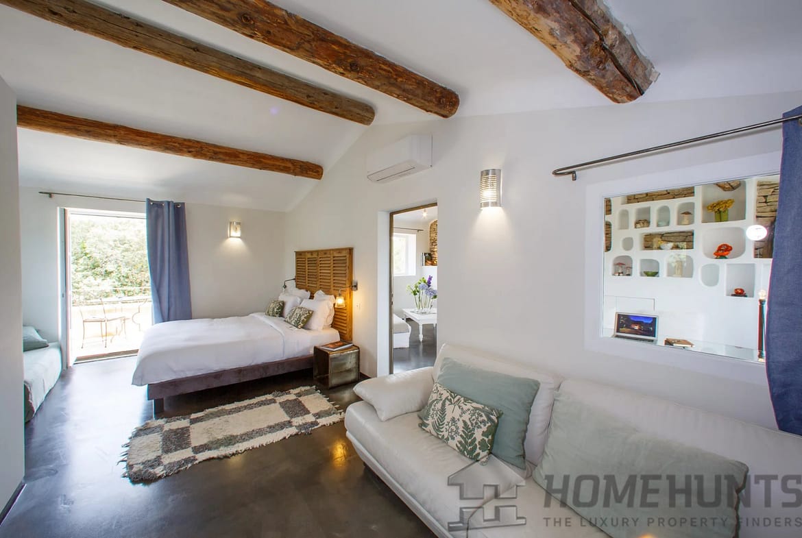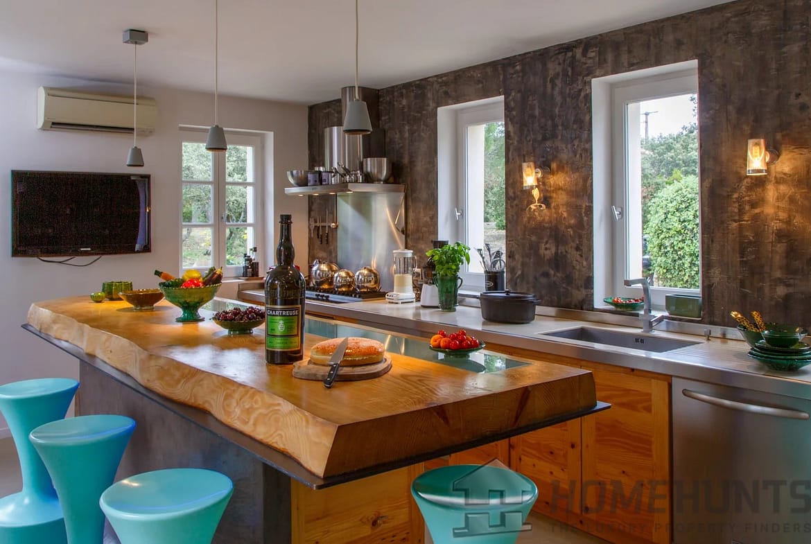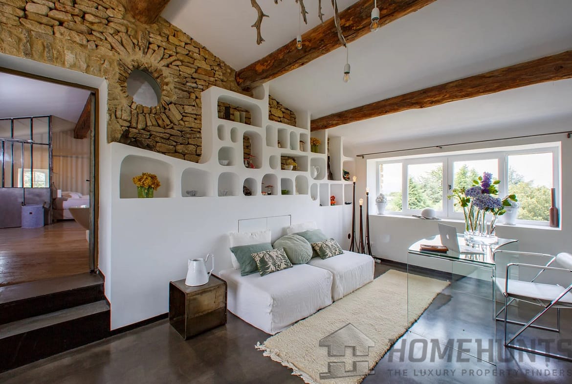 The refurbished interior spaces are comfortable and offer harmony between stone and wood. That family home comprises 6 bedrooms and 3 bathrooms, including a 41m2 master suite, a 38m2 living room and a 22m2 fitted kitchen. The south-facing shaded terrace leads directly to the kitchen.