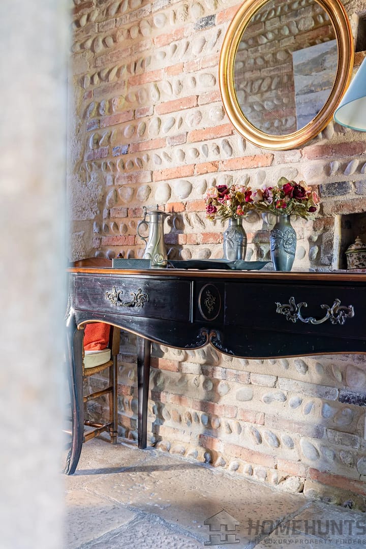 The 17th-century building opens onto the south-facing terrace and swimming pool and comprises a living room with fireplace, a utility room and a beautiful kitchen.