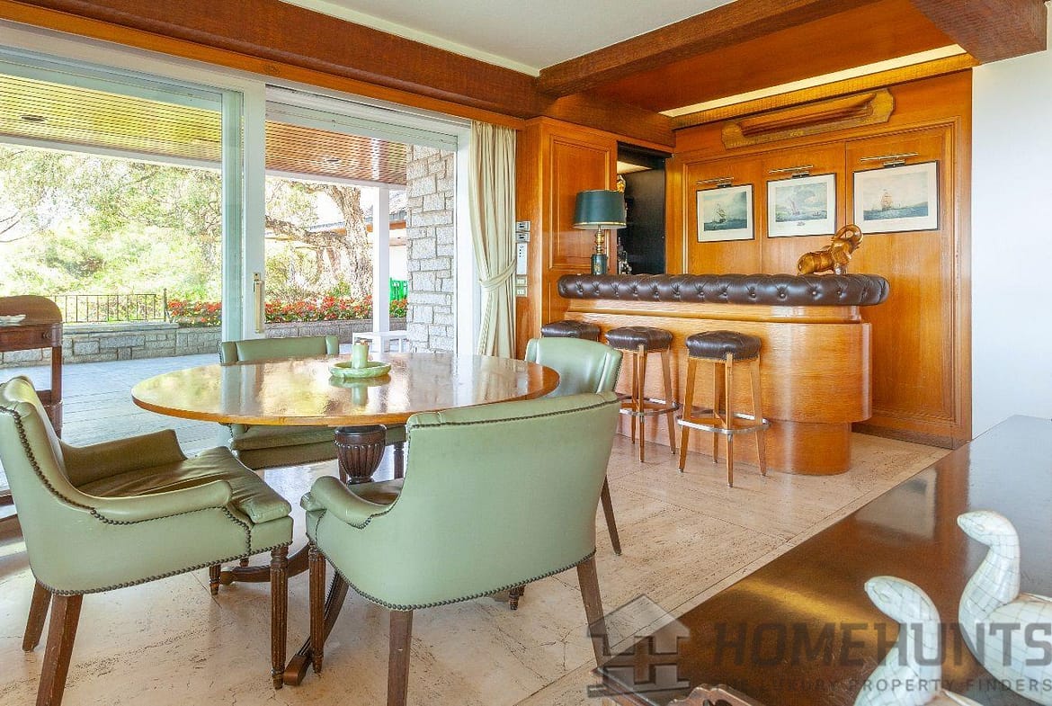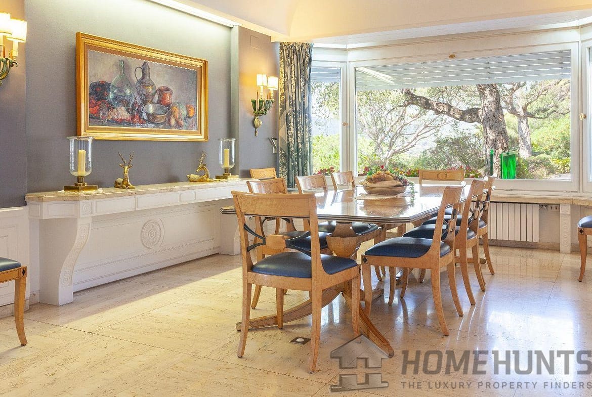 – Crossing the access porch to the house we access the entrance hall that leads us to the fabulous living room from which we can enjoy the wonderful views of the garden and the sea. Distributed on two levels, it is decorated with noble woods and has a fireplace, a bar area and from which you can access the large covered terrace. Attached to the living room we find the dining area and then the large kitchen, service area, laundry and pantry. On the upper floor there are a total of three double bedrooms with en-suite bathrooms, one of them as a master suite with dressing room and another four double bedrooms that share two full bathrooms with bathtub and shower.