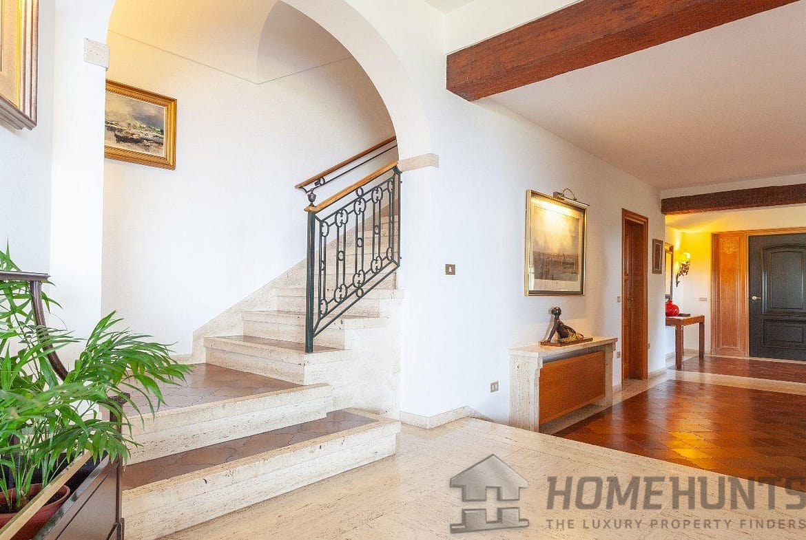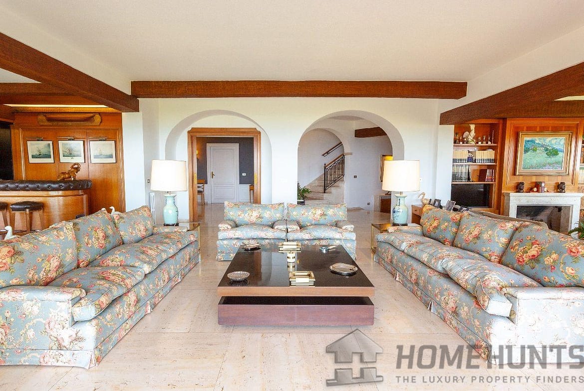 The second floor of the villa is occupied by a fabulous living room / desk area with fireplace, full bathroom and access to a charming terrace from which you can enjoy beautiful panoramic and sea views.