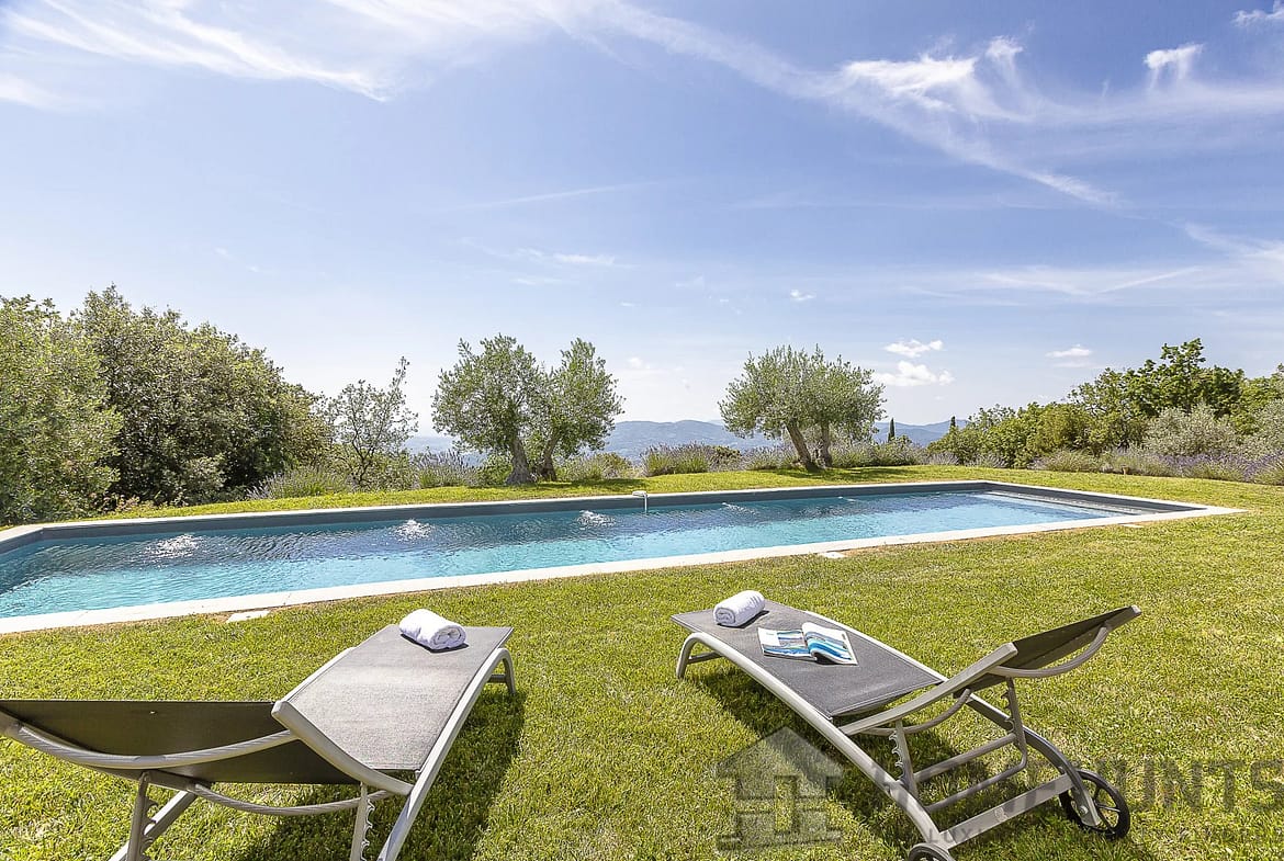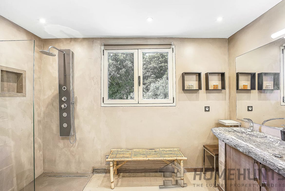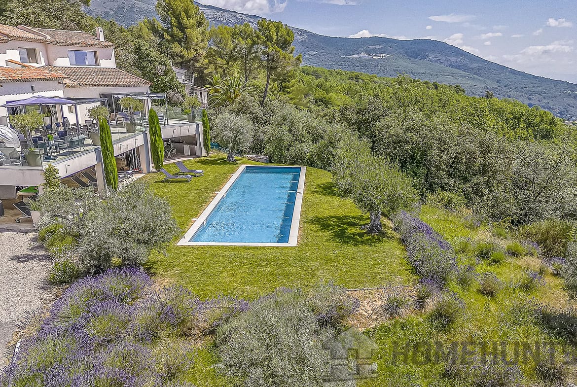 The 6,500 m2 grounds, planted with a variety of olive trees and Mediterranean species, enjoys a splendid swimming pool, pool house and numerous terraces. Carport and several parking spaces.