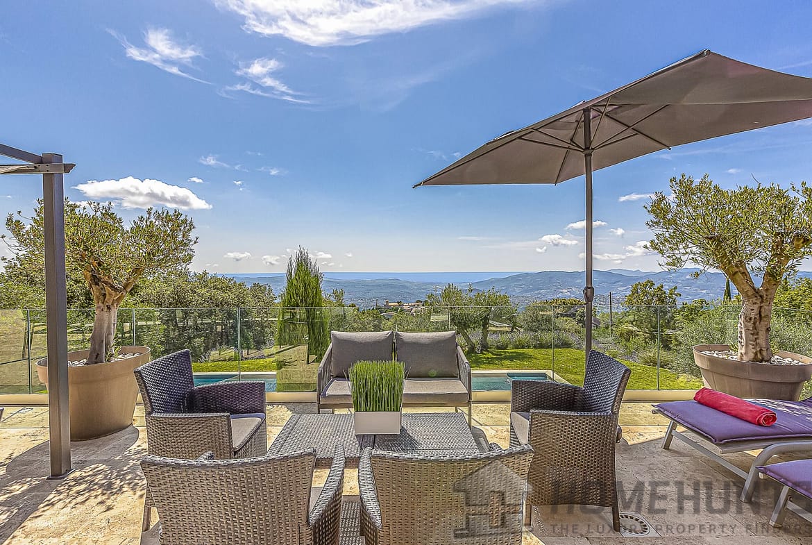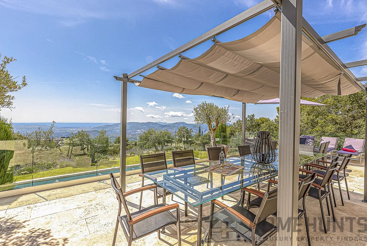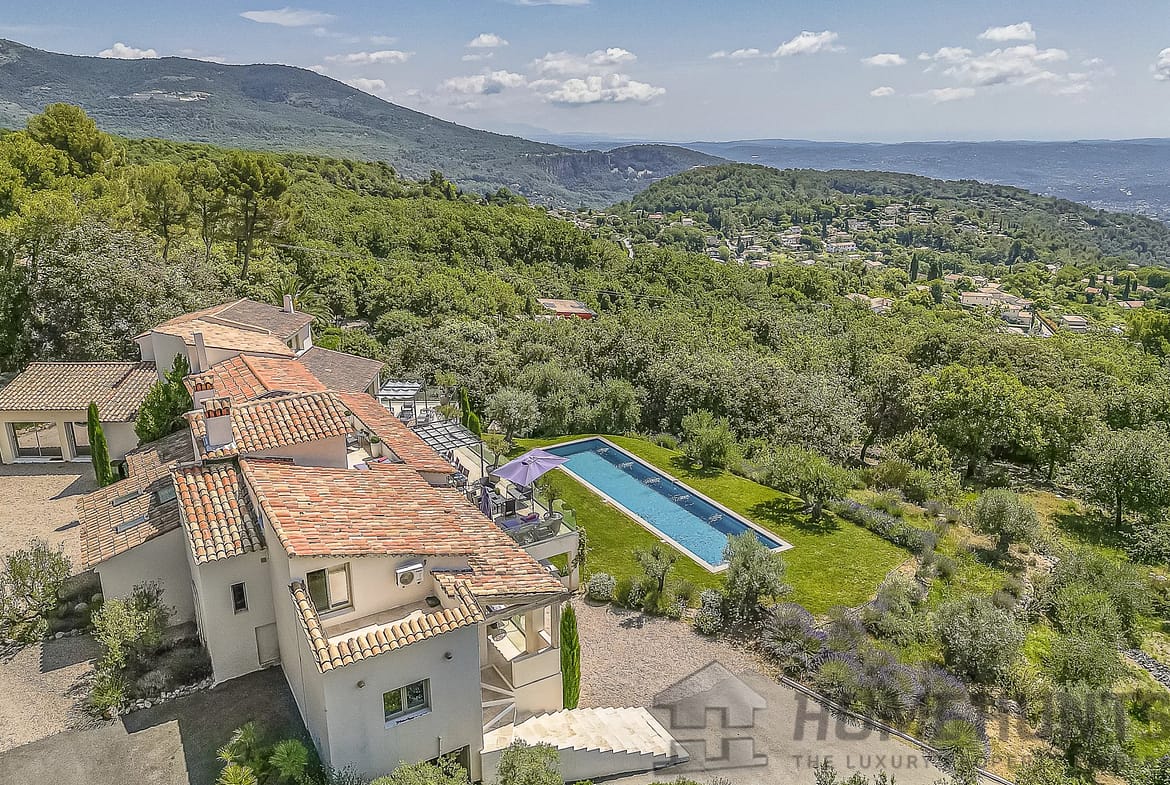 Just a stone’s throw from Cannes, in the authentic, unspoiled village of Cabris, discover this unique property with exceptional panoramic views over the sea, the Lerins islands and the bay of Villefranche, nestled into the lush green hillside.