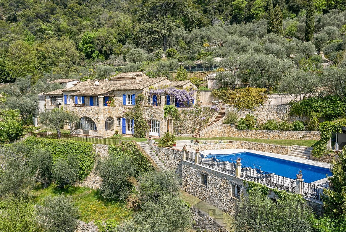 Sitting in a prominent position with incredible views, this stunning, stone built property wows from its spectacular location just a 20 minute walk through the forest to the picturesque village of Cabris, overlooking the lush valley and the sea.