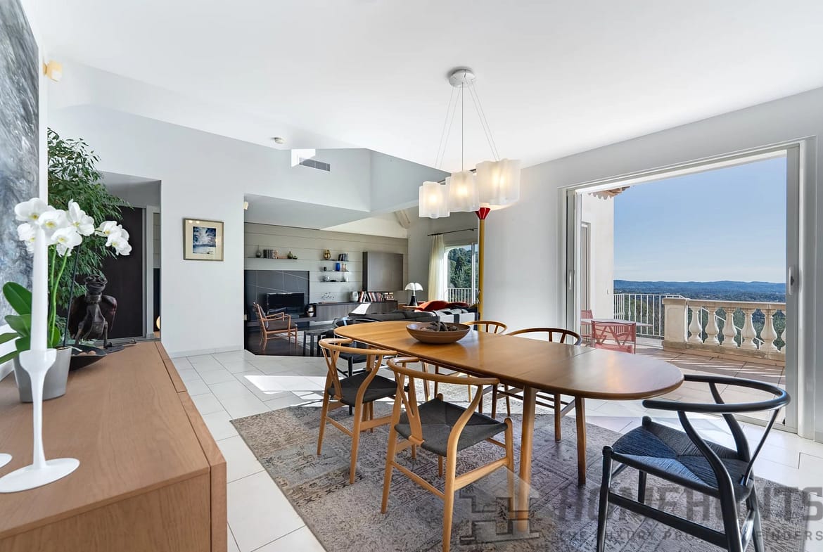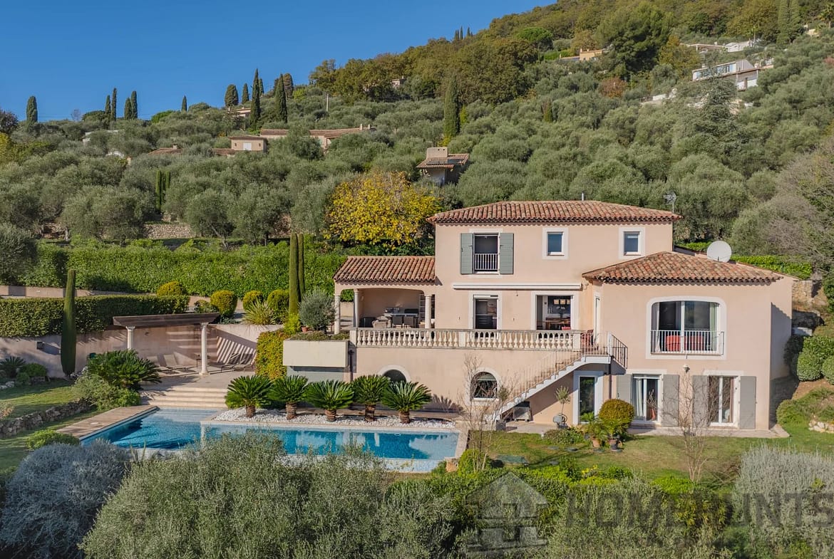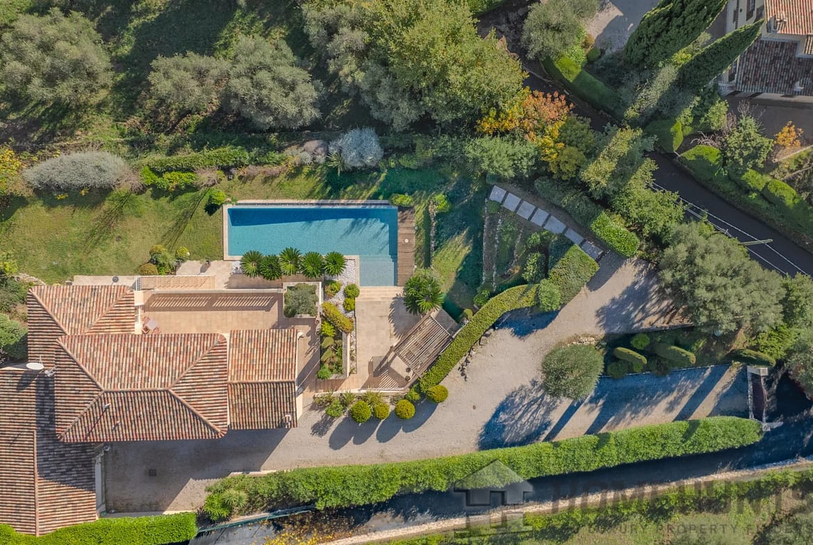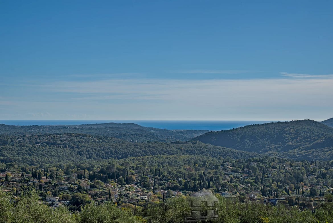 Nestled on a vast, unoverlooked plot, the property enjoys exceptional panoramic views over the valley, the sea and the picturesque medieval village of Cabris.