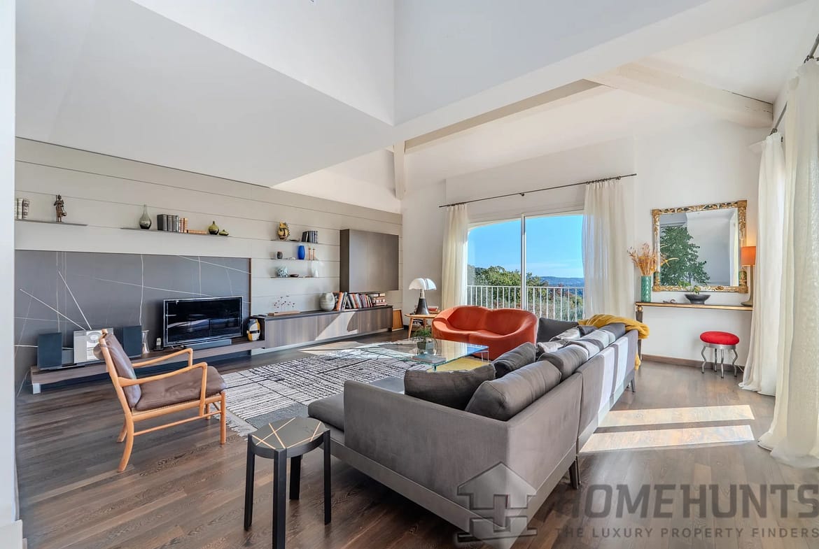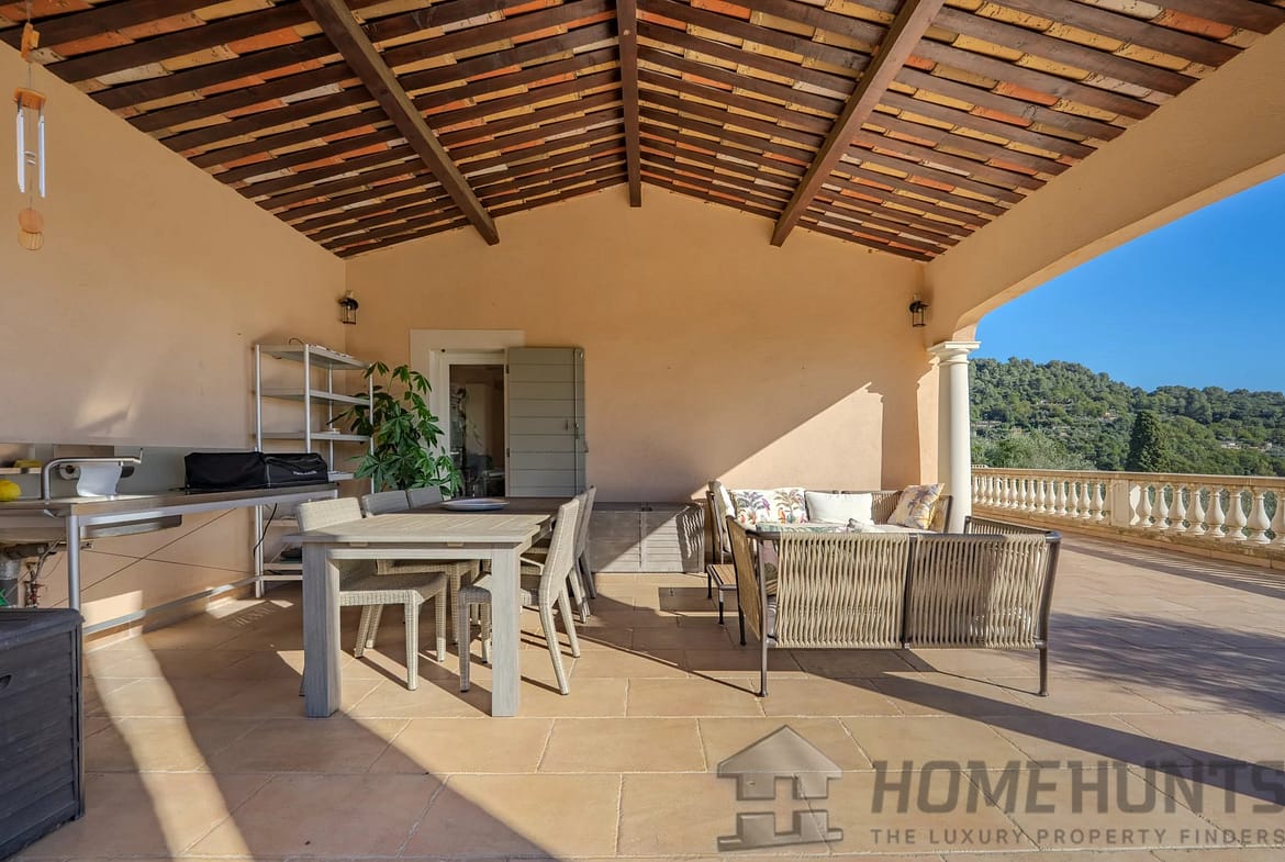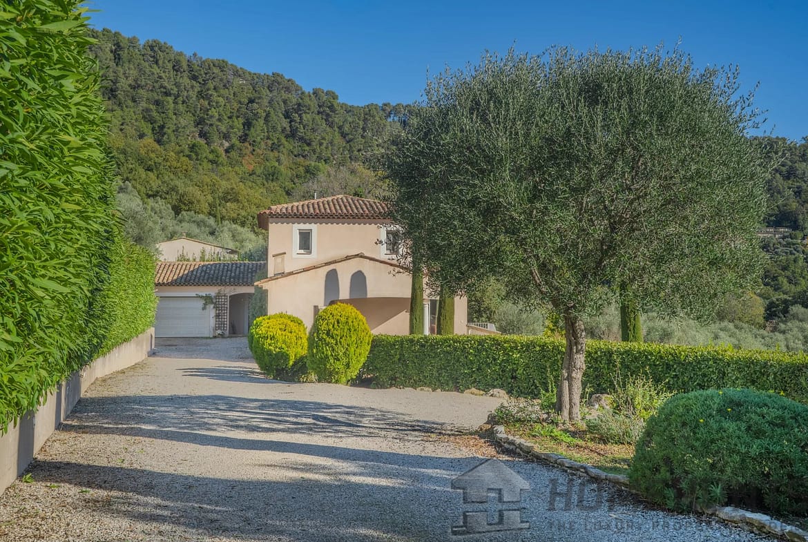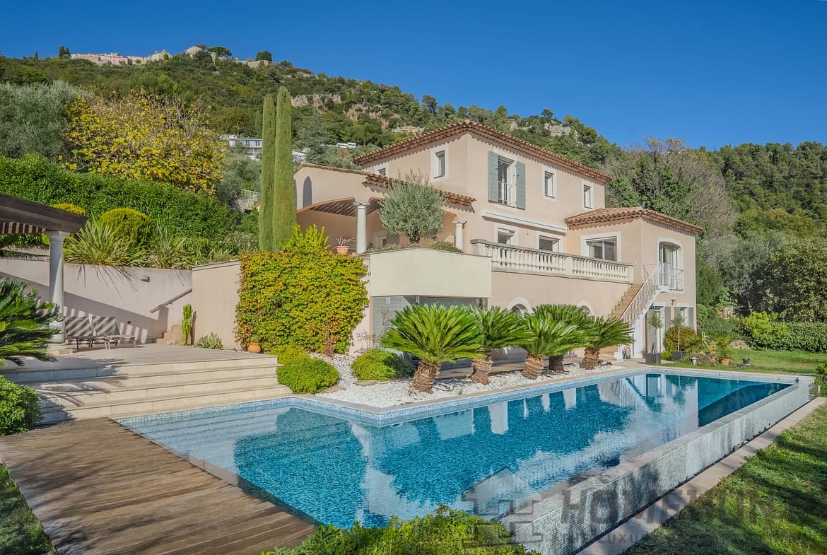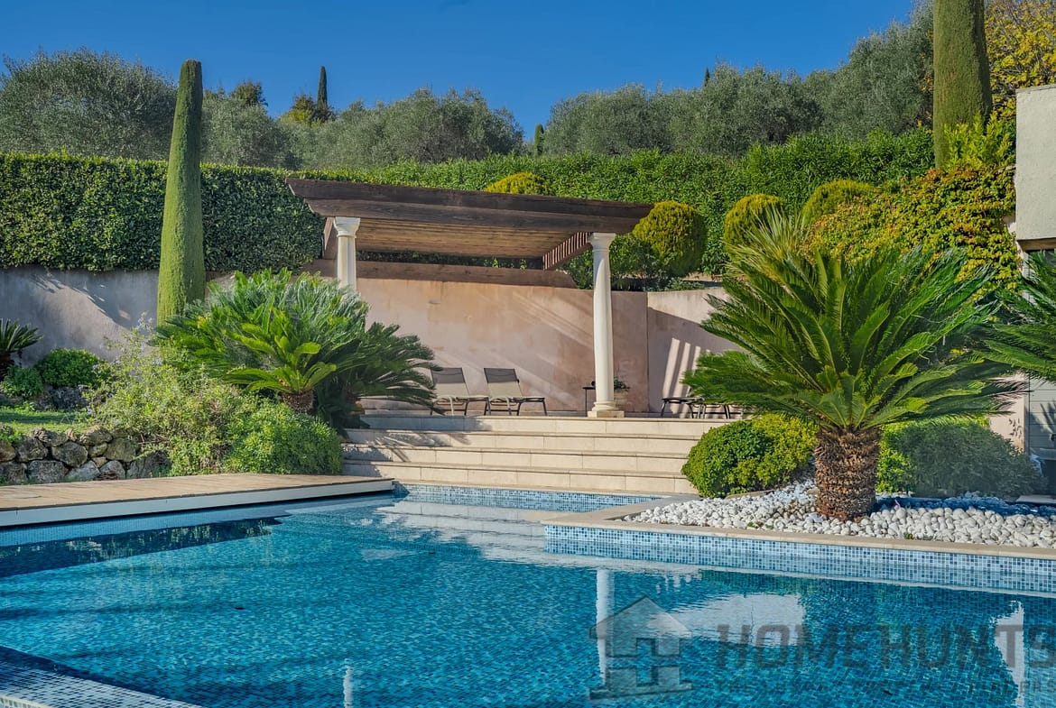 Nestled on a vast, unoverlooked plot, the property enjoys exceptional panoramic views over the valley, the sea and the picturesque medieval village of Cabris.
