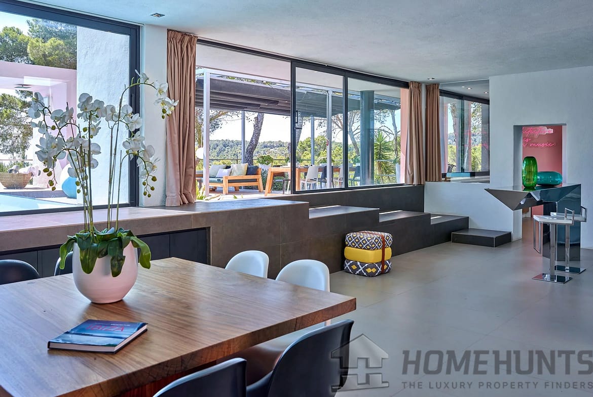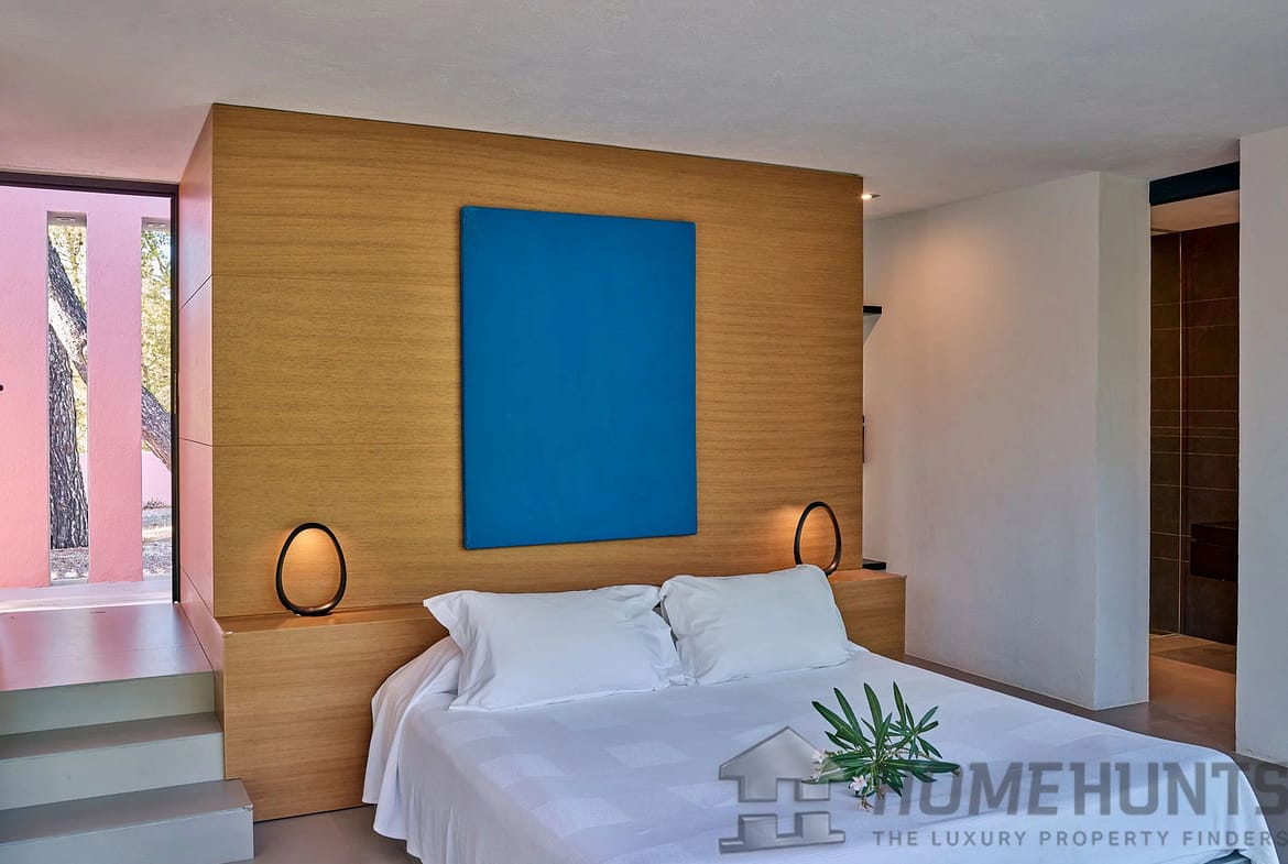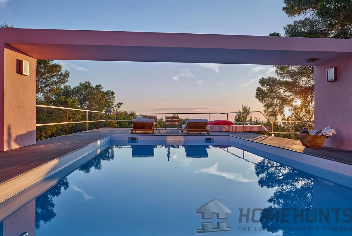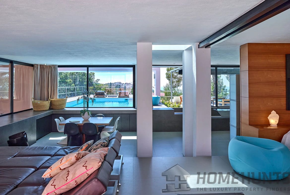 This impressive modern villa is located in the eastern part of Ibiza, near the famous Cala D’Hort and Cala Vadella beaches, surrounded by Mediterranean nature and pine trees. Situated on a quiet and private hillside, this hidden gem offers spectacular views of the sea and sunsets, ideal for enjoying unforgettable moments on the island. Just a few minutes from the charming village of San José, the property combines elegance, tranquility, and an unparalleled natural setting.