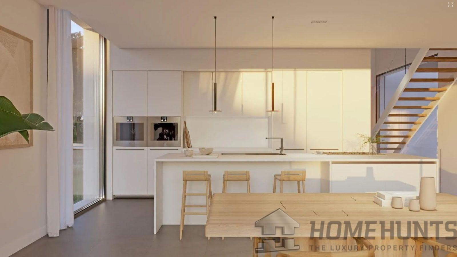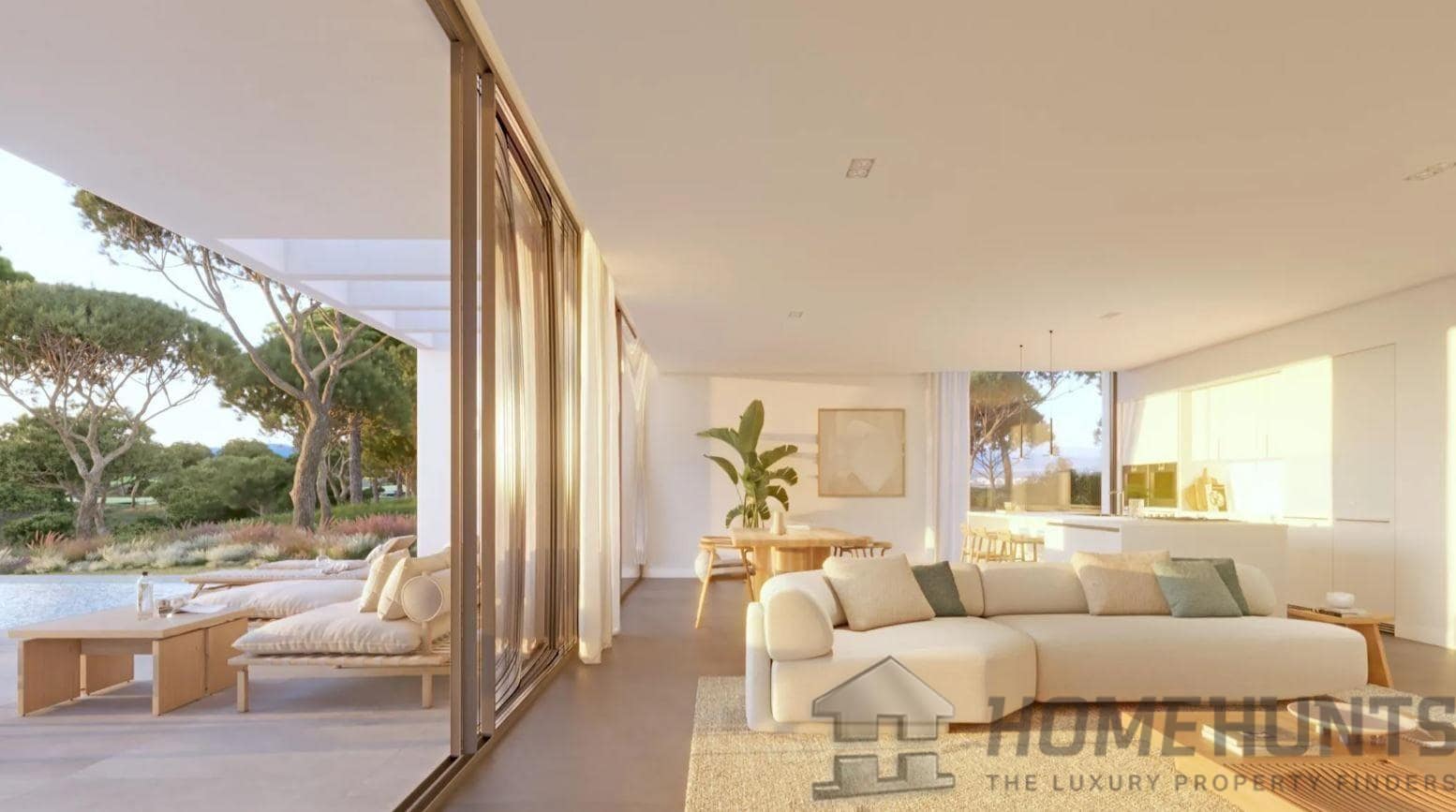 There’s a distinct connection between nature and modern design in this property. The architect has created harmony between its natural surroundings and the earthy tones of the interiors, with a free-flowing floor plan and floor-to-ceiling doors enhancing this.