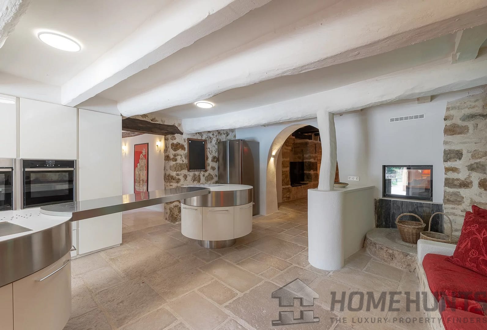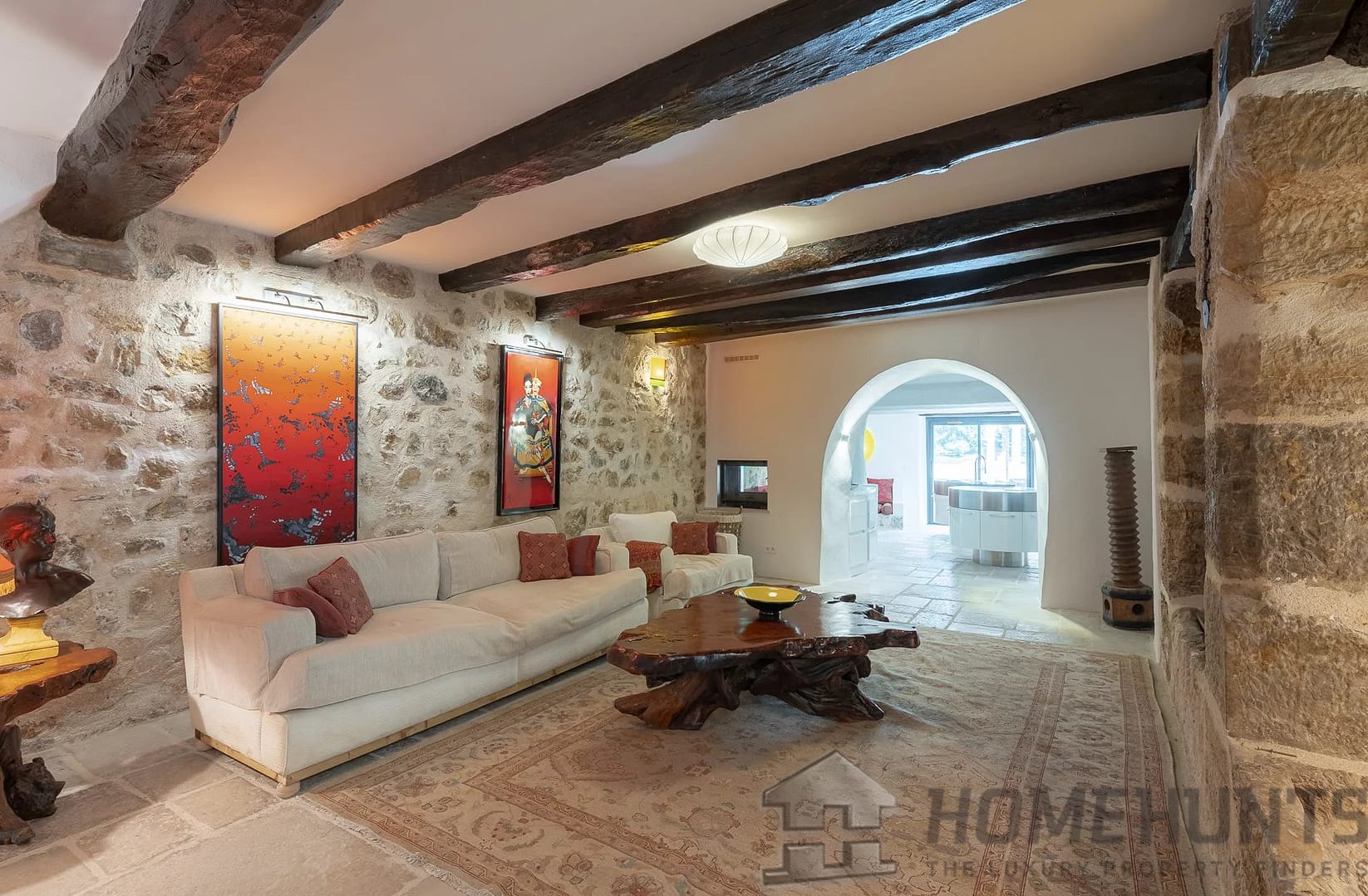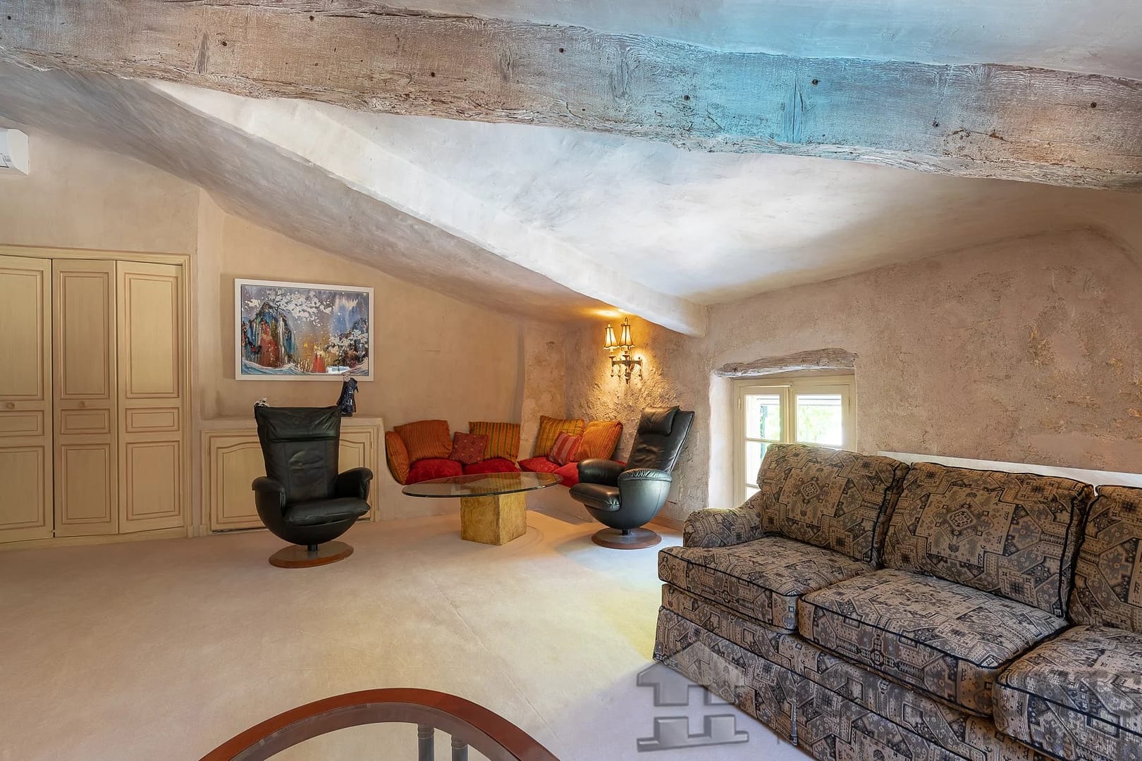 Walls and floors in stone, ceilings with beautiful wooden beams. Sauna, two storage rooms, large cellar one used as wine cellar.