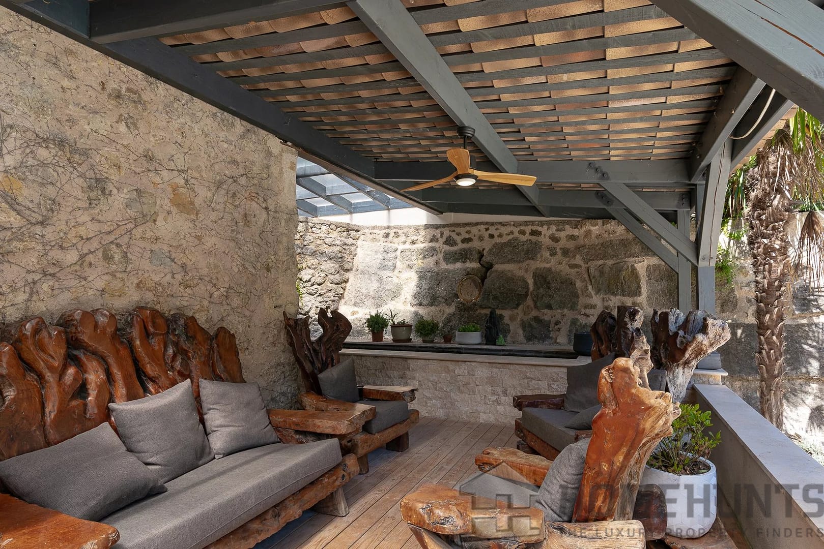 The main house is rather impressive : approx. 542 m2 of well-kept ancient details offering, entrance, laundry room, 2 double bedrooms with bathroom WC, Master suite with bathroom WC and large veranda.