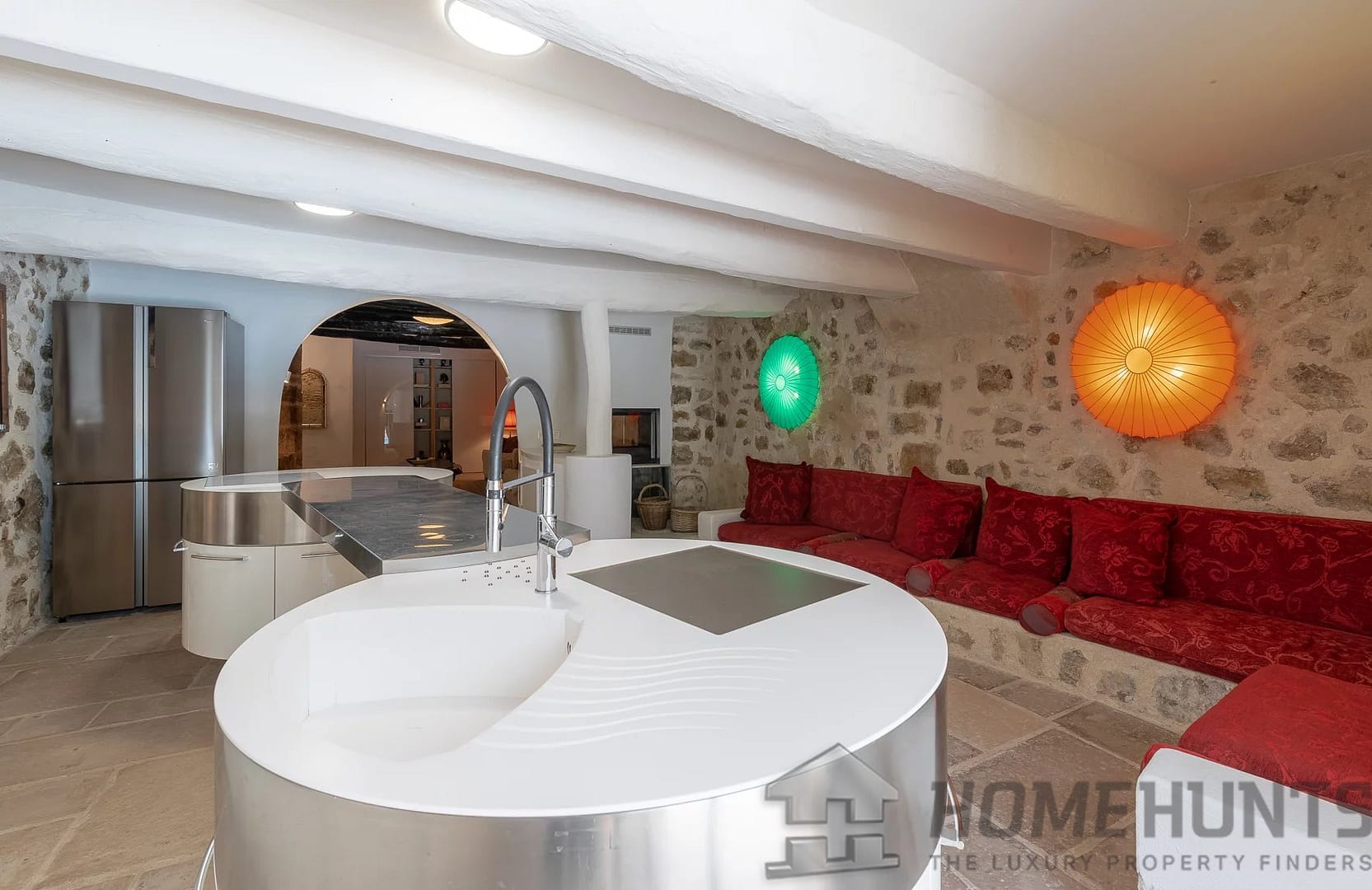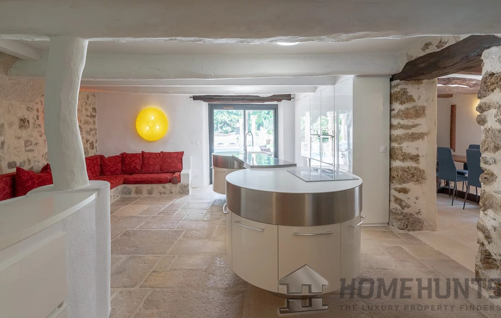 Garden level large reception room with direct access to the large fitted kitchen which again opens up toward the covered terrace and pool area.