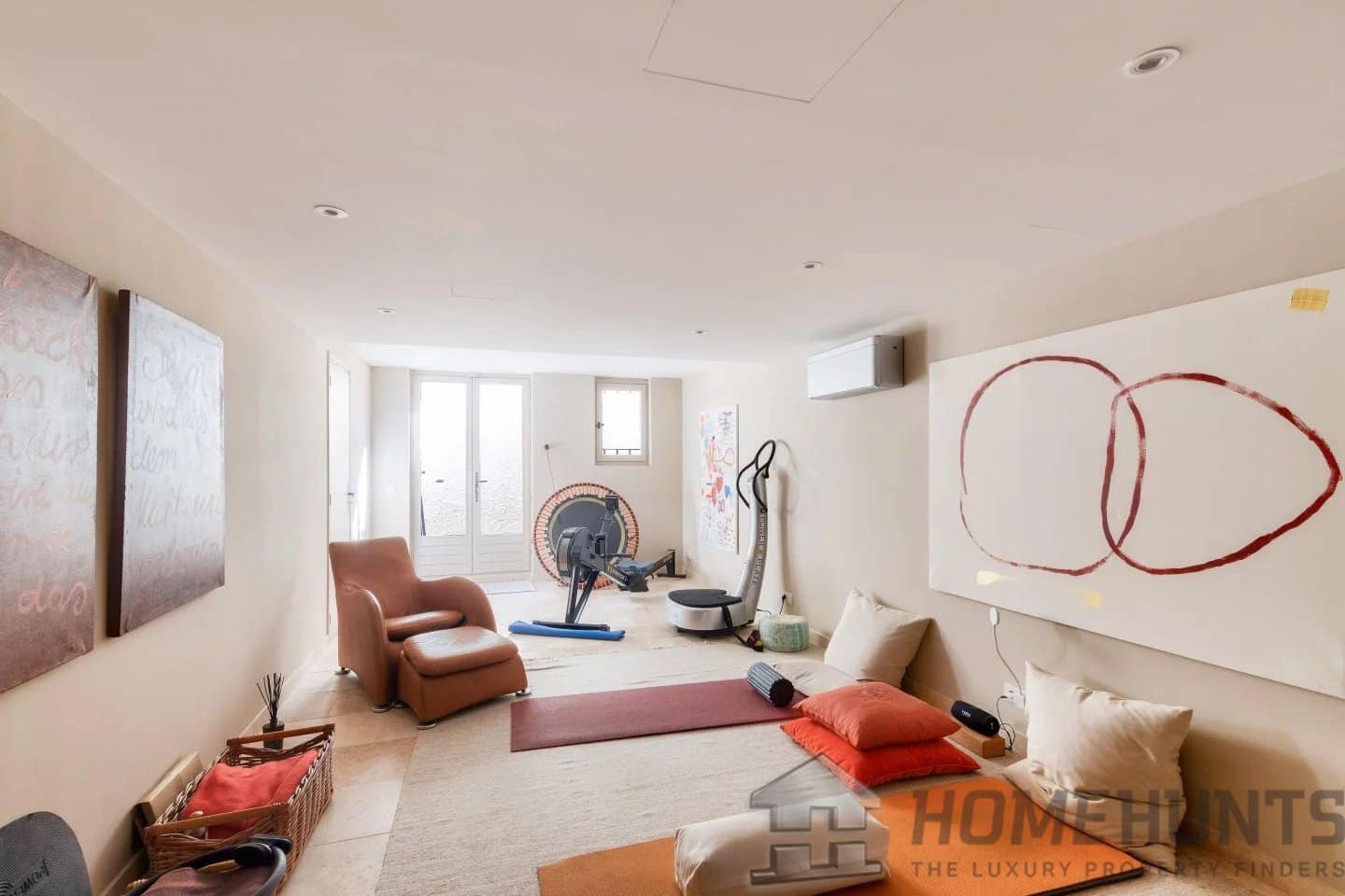 Within the main house, it features a spacious living room, a kitchen, 4 bedrooms, 4 bathrooms, a dressing room (which can be converted into a 5th bedroom), guest toilets, a gym, a sauna, storage room, a laundry room with ironing facilities, a large pantry, and a wine cellar providing exceptional comfort.