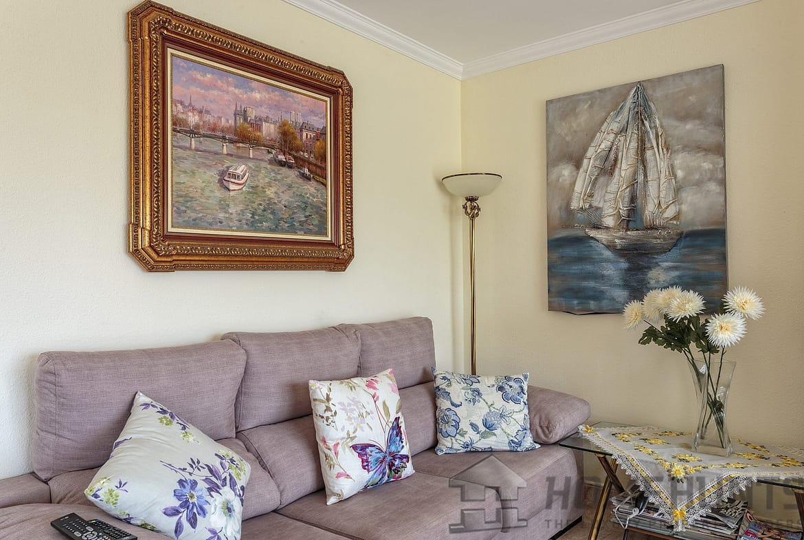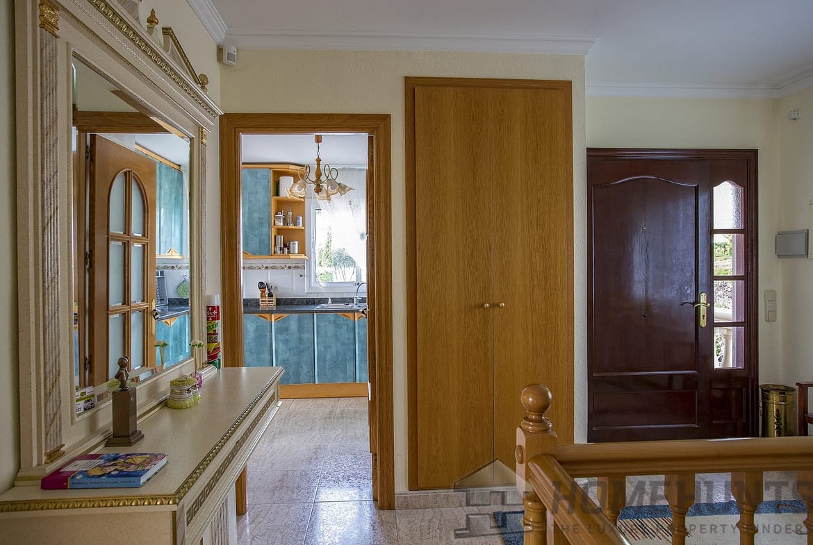 The main entrance is on a wide staircase, an entrance hall with a built-in wardrobe, a separate fully equipped kitchen with access to the lounge-living room with fireplace and onto a huge terrace overlooking the sea and the garden. Bedroom suite with bathroom with bath tub, dressing room and exit to the balcony. Children bedroom. The bedroom cabinet. Bathroom with bath tub. Air conditioning in the lounge and bedroom suite.