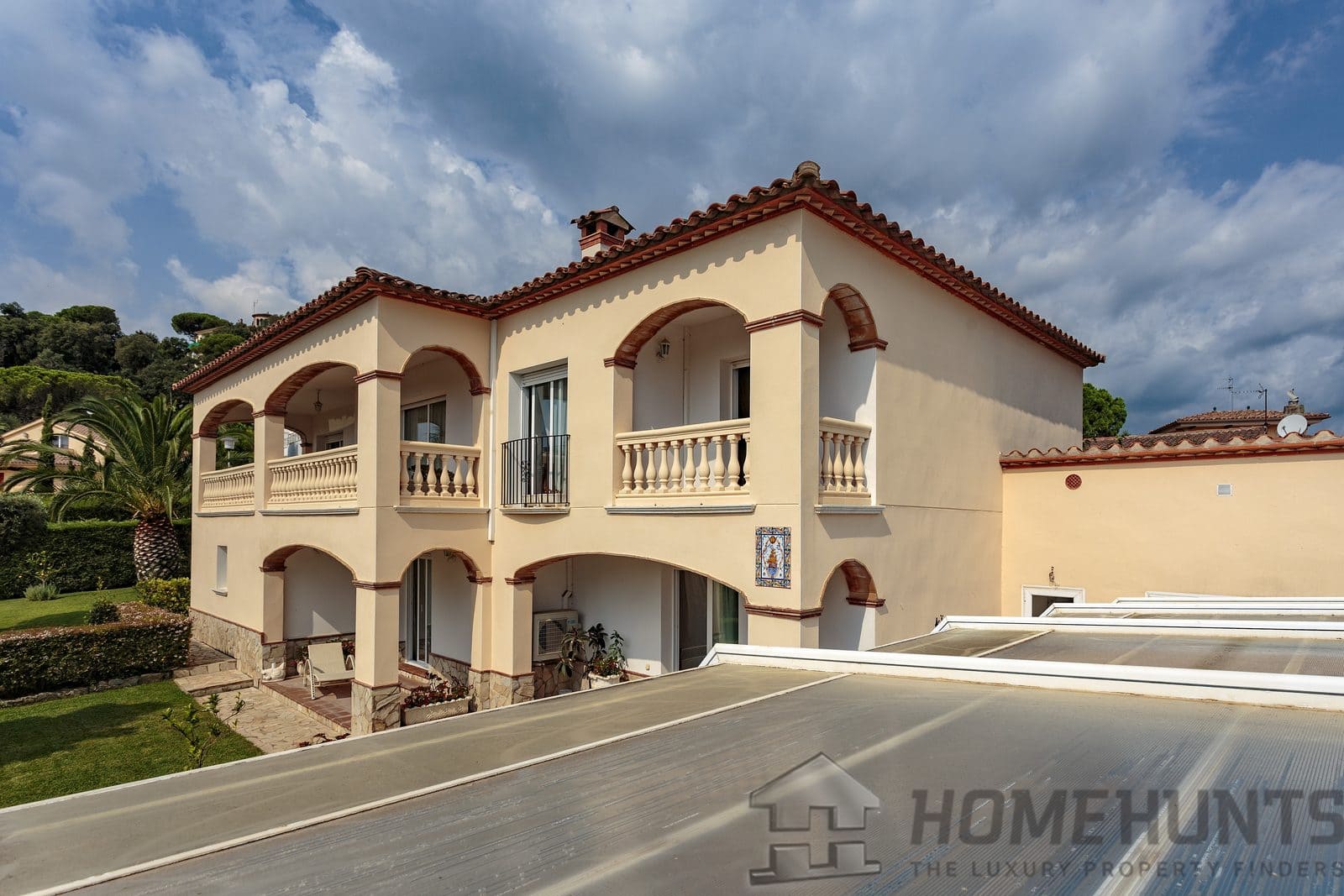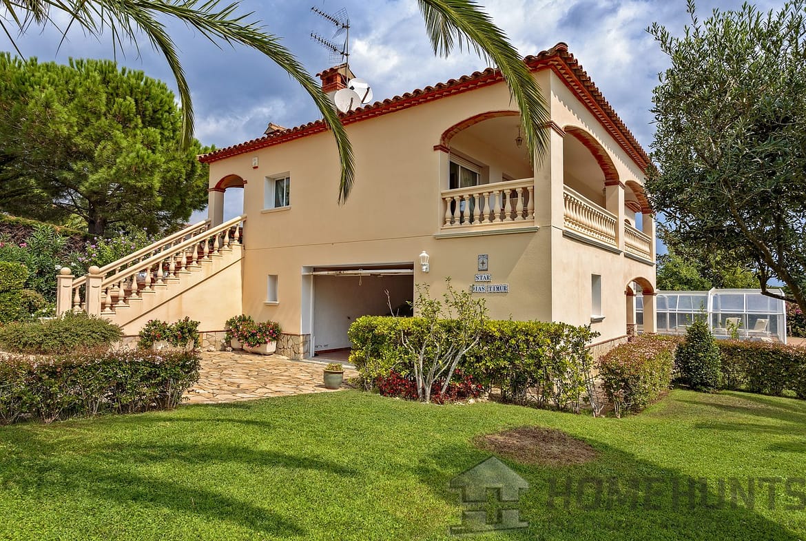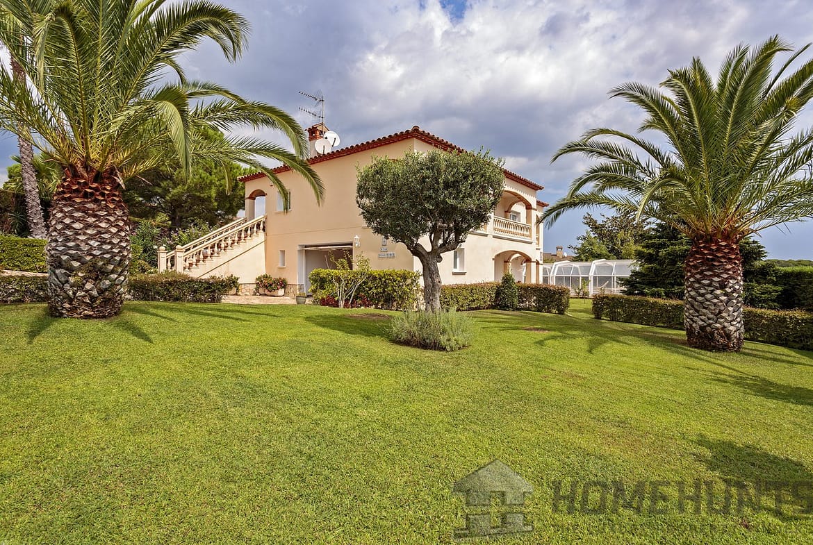 The magnificent two-storey villa is located in the tranquil and lush urbanization of Mas Ros in the outskirts of the town of Sant Antoni de Calonge, on the border with the city of Playa de Aro, Costa Brava coast of Spain.