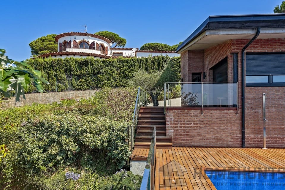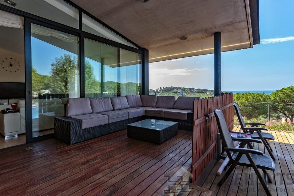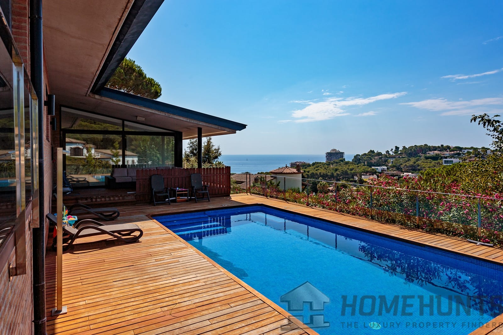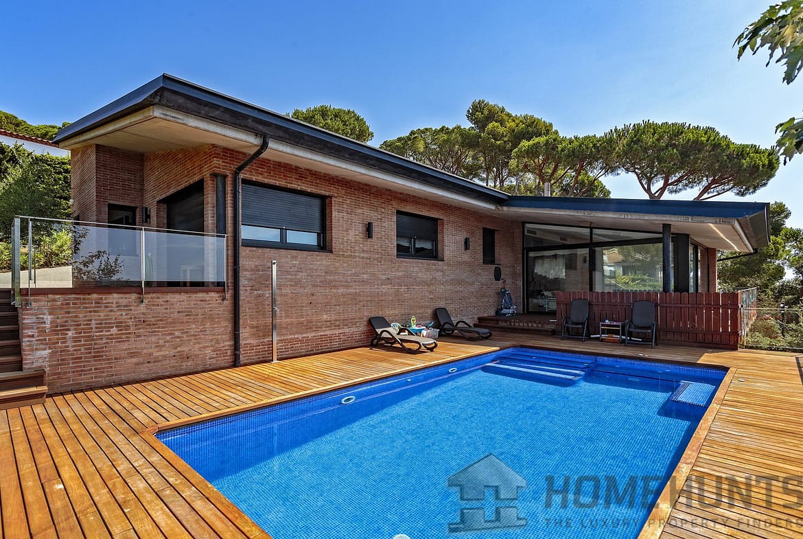 Modern villa with 4 bedrooms, located in the elite urbanization Mas Vilà, 15 minutes walk to the beach, very close to the town of Sant Antoni de Calonge, on the Costa Brava in Spain. The superb location and orientation of the house allows for luxurious sea views from the spacious wooden poolside terraces.