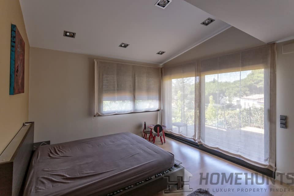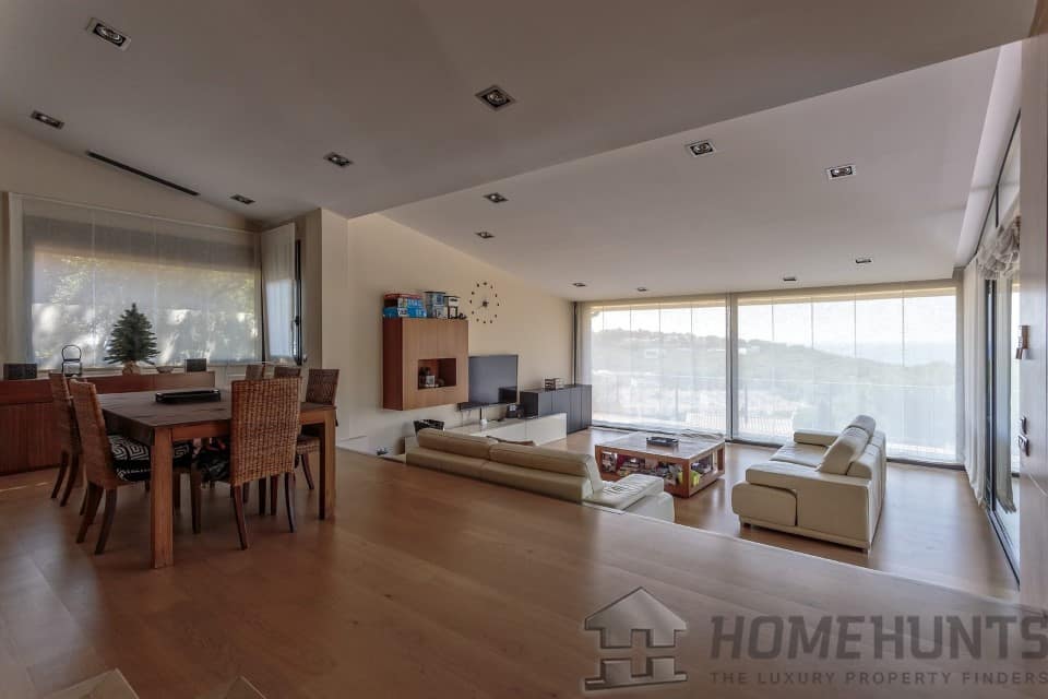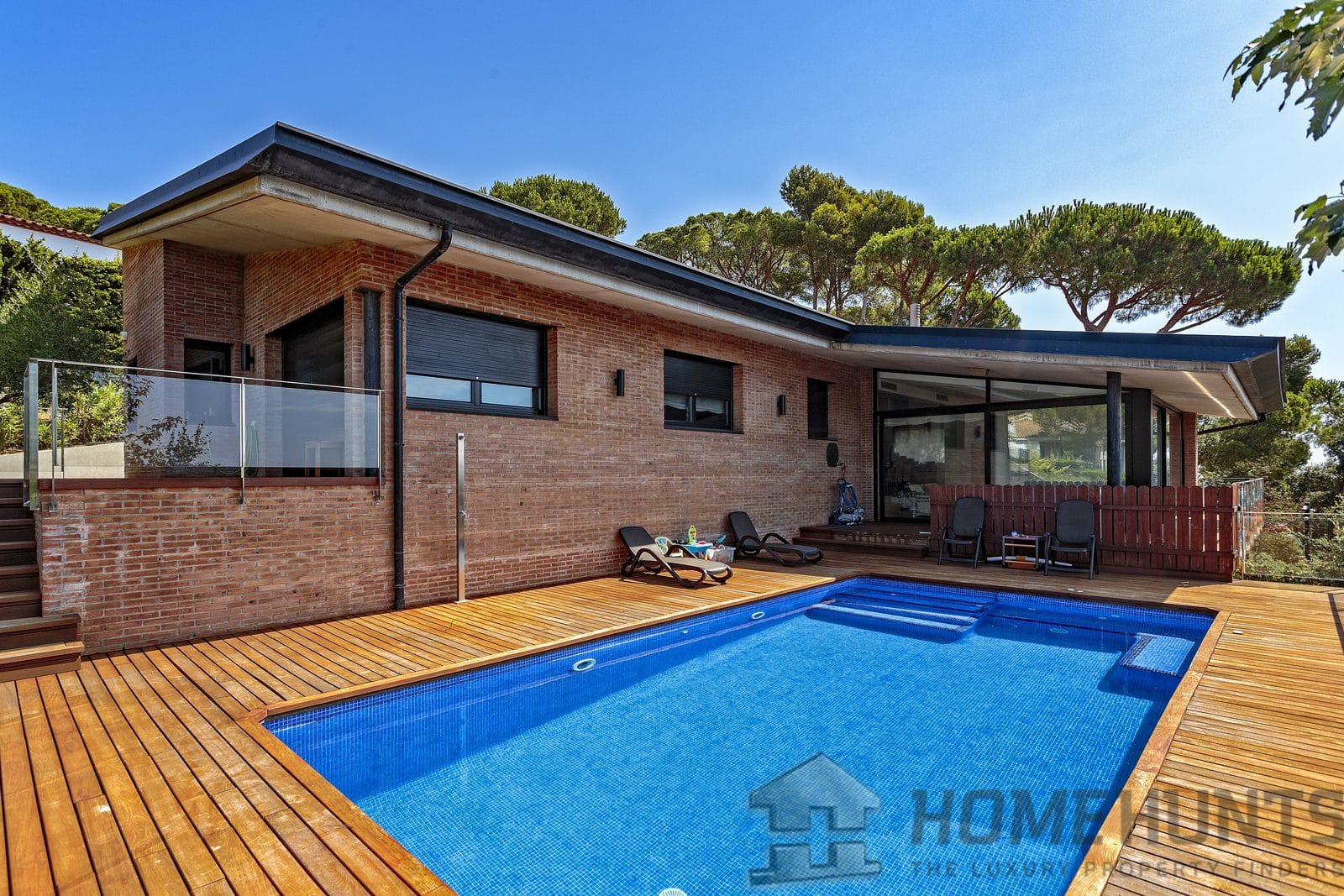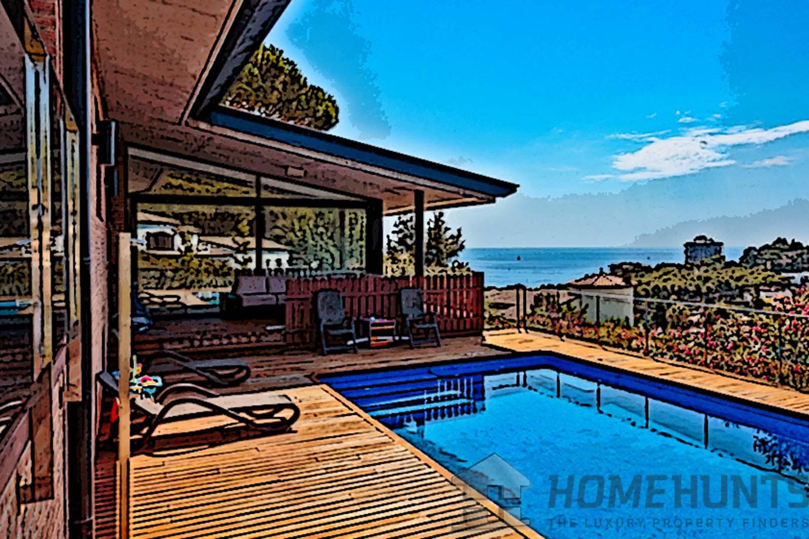 Modern villa with 4 bedrooms, located in the elite urbanization Mas Vilà, 15 minutes walk to the beach, very close to the town of Sant Antoni de Calonge, on the Costa Brava in Spain. The superb location and orientation of the house allows for luxurious sea views from the spacious wooden poolside terraces.