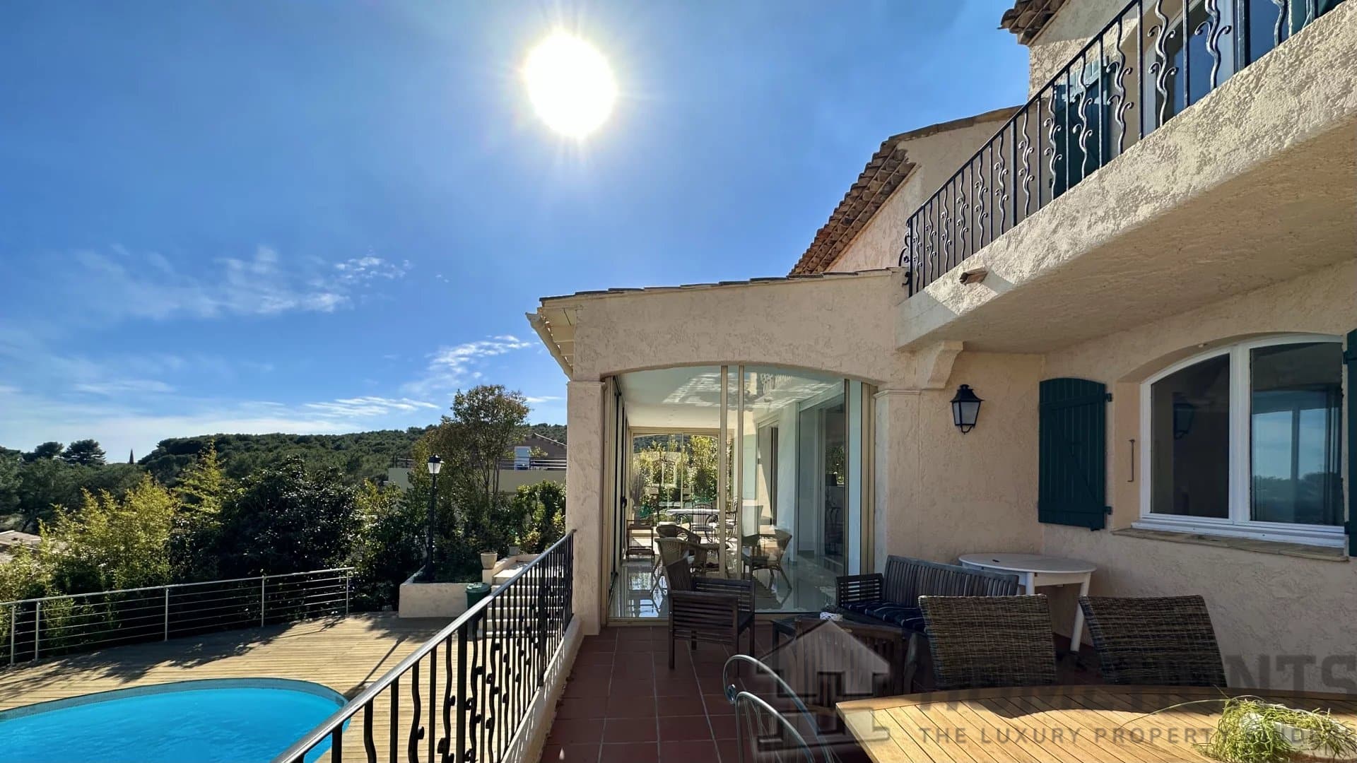 Located on the top of Vallauris in a quiet residential area, this renovated villa with beautiful materials offers a wonderful view of the sea, Cap d’Antibes and the hill of Super-Cannes.