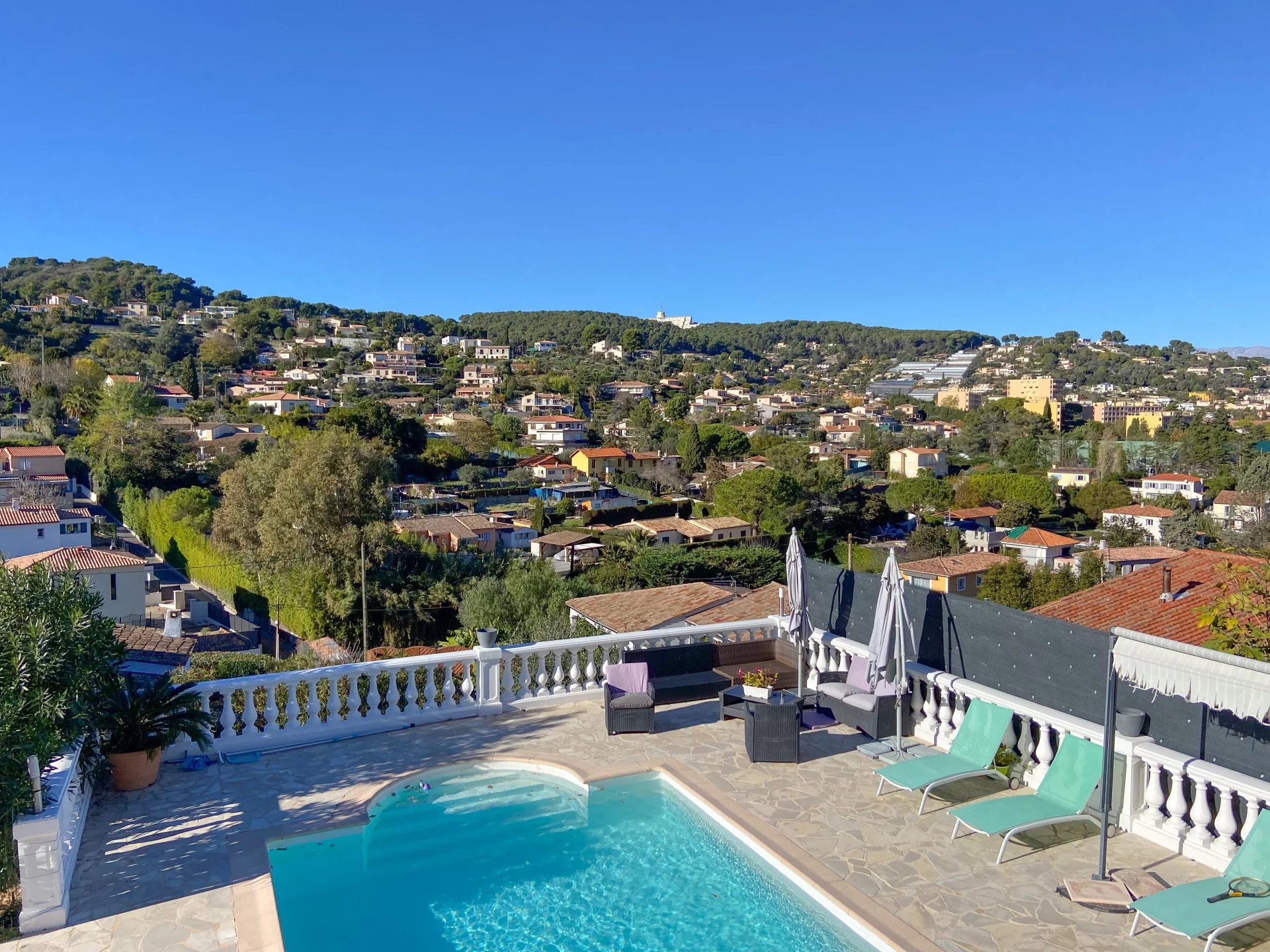 Superb large family villa looking out over a quiet hillside view in Super Cannes.