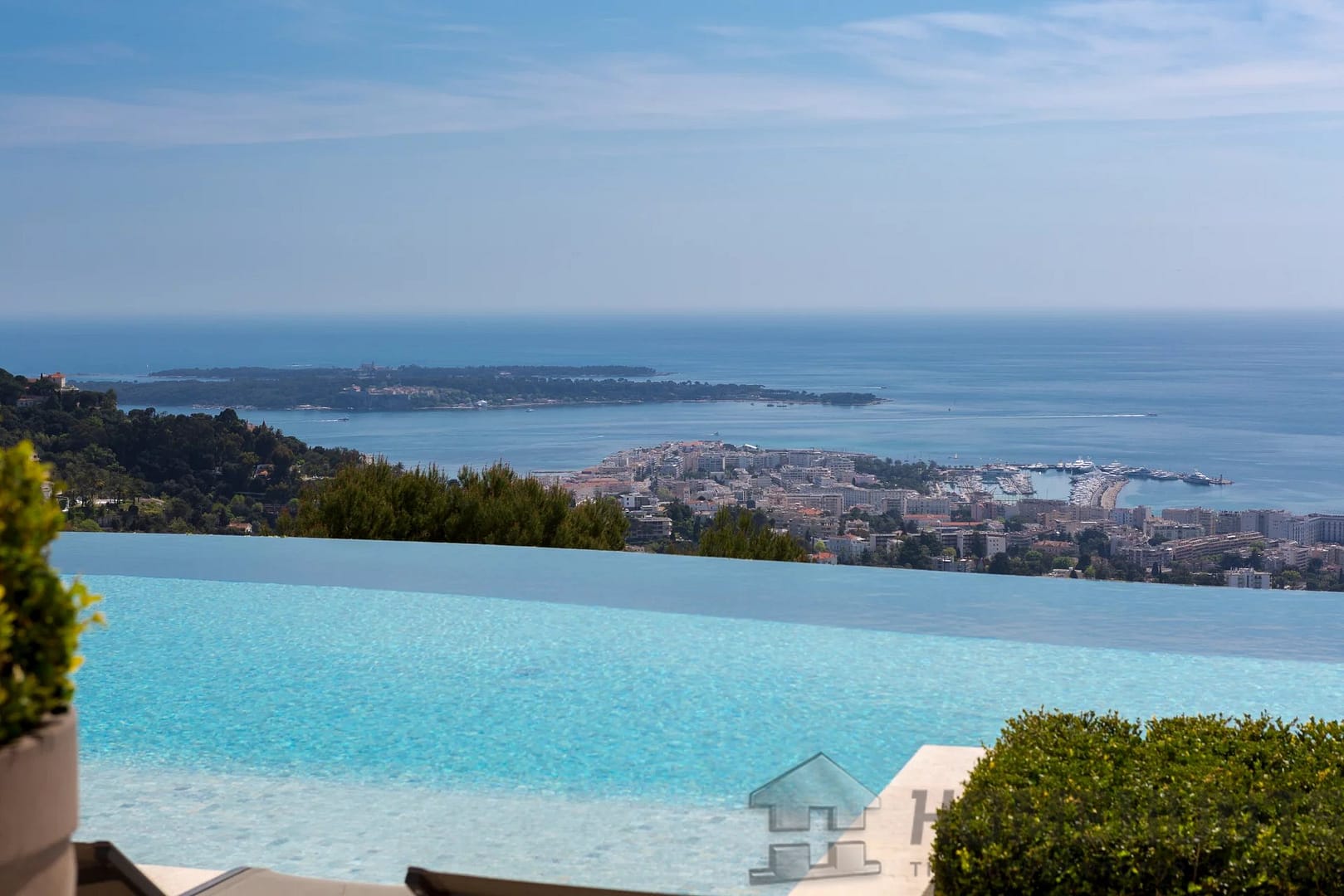 Situated on the heights of the most coveted hill in Cannes, this sumptuous property enjoys a spectacular view of the world-famous bay, the Lerins Islands and the Esterel massif.
