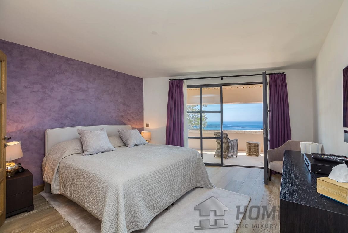 It has a covered terrace with a lounge and summer kitchen with bar, a shower and toilet. The infinity pool can be heated and includes a Jacuzzi. A fitness room equipped with “Star Trac” equipment also benefits from a sea view.